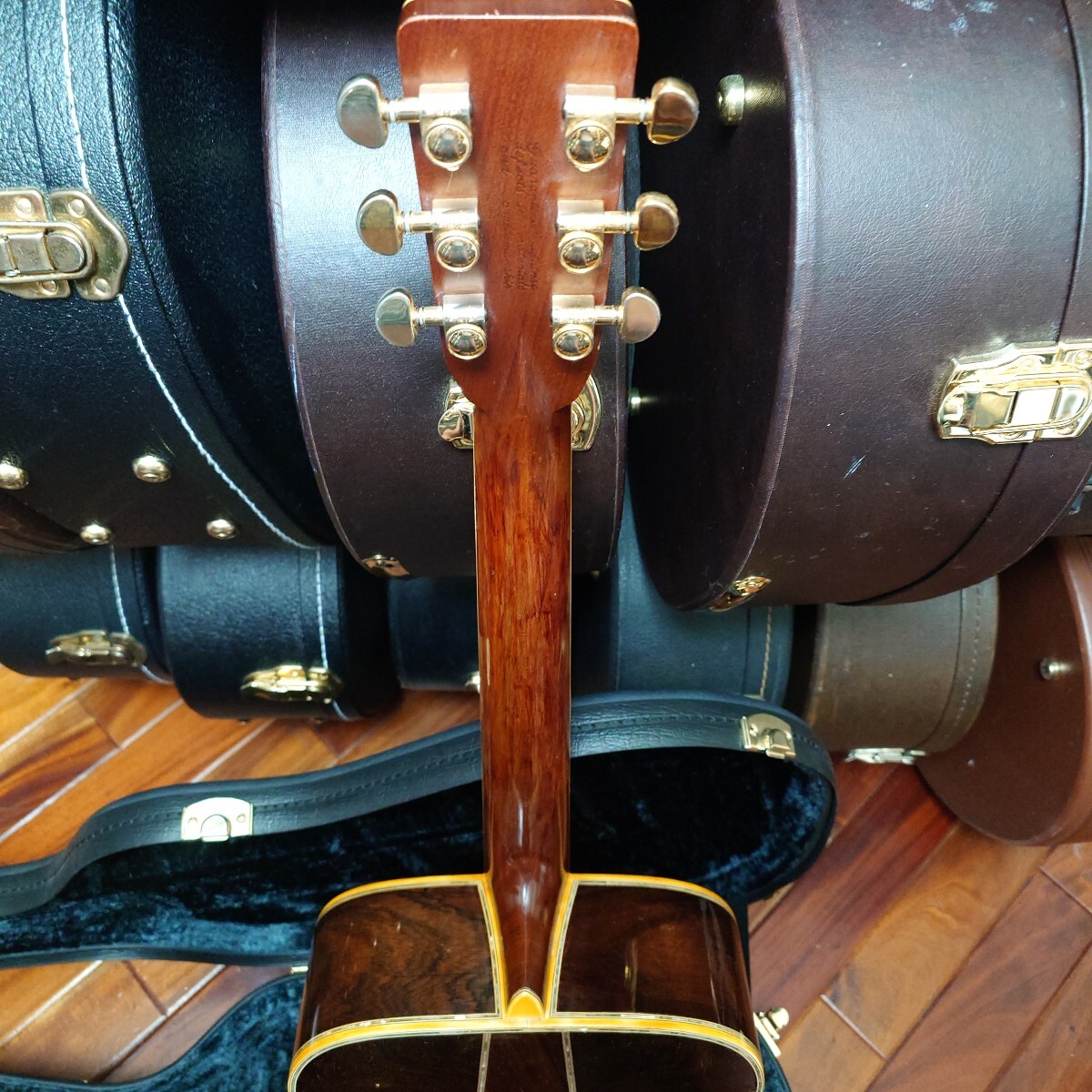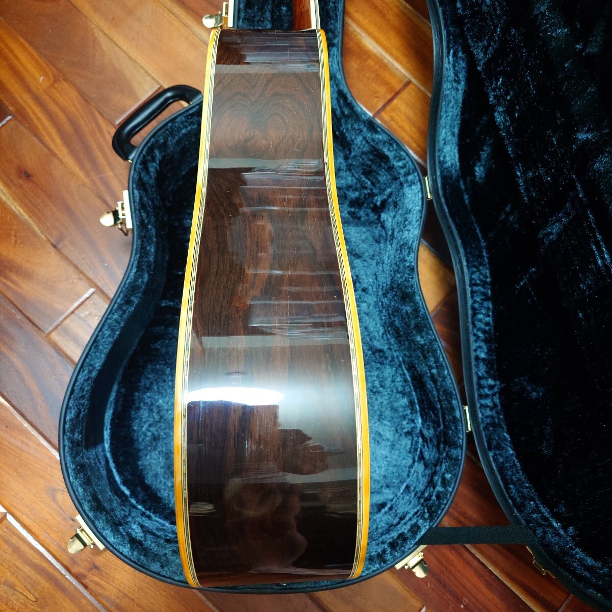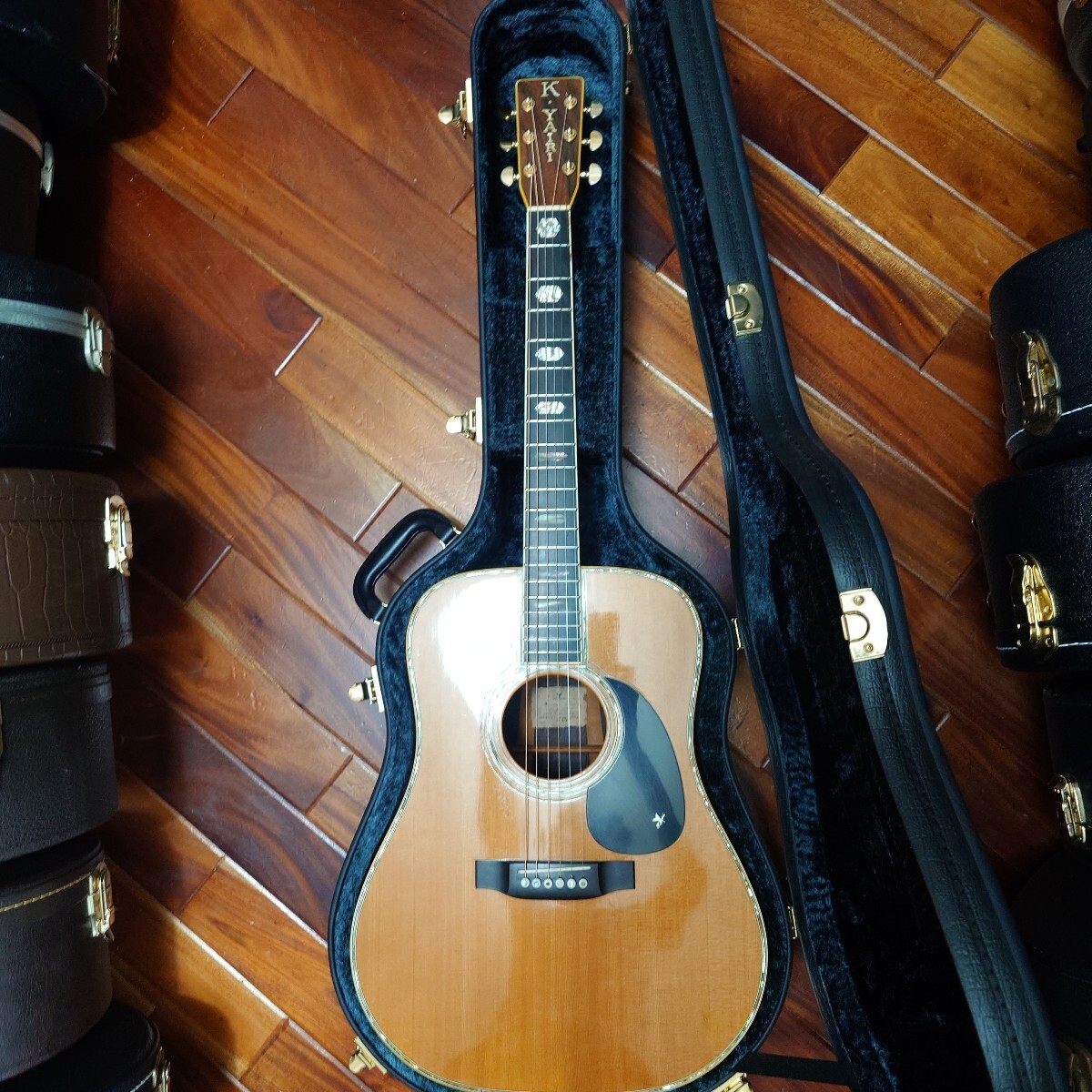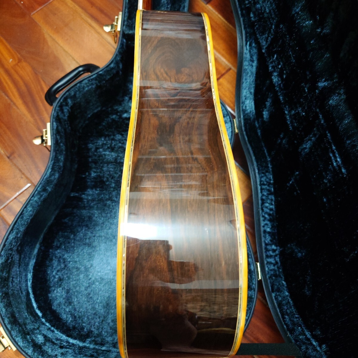 KヤイリのDY45 高級ハカランダ単板サイドバック 1981年製です。バックは3ピ―スバックとなります。とても音のバランスが良いハカランダのメリハリのあるサウンドです。マ―チンの40番代の音に近いと思います。3ピ―スバックならではの音のまとまりの良さがあります。ピッキングのサウンドも素晴らしいです。状態は木目の割れやブレイシングの剥がれ等はありません。工房にてメインテナンスとパ―ツ交換をして仕上げてあります。年製相応の傷や多少の白濁もありますがあまり目立つ物は無いと思います。サドル残もありますのでお好みで弦高調整も可能です。ケースはほぼ新品に見える近年物のKヤイリの高級ケースが付きます。ご自身の判断でNCRでお願いします。