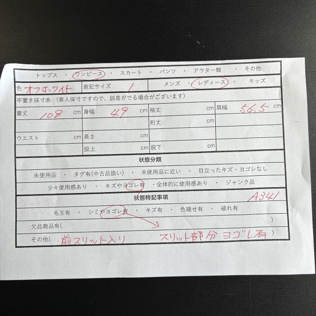 ・シミやヨゴレ有(スリット部分ヨゴレ有)