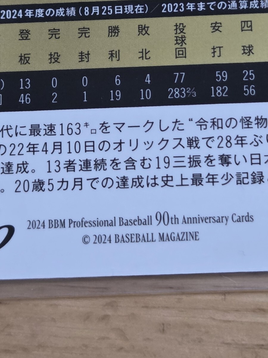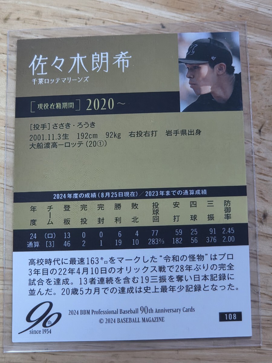 BBMプロ野球カード2024 佐々木朗希 千葉ロッテマリーンズ