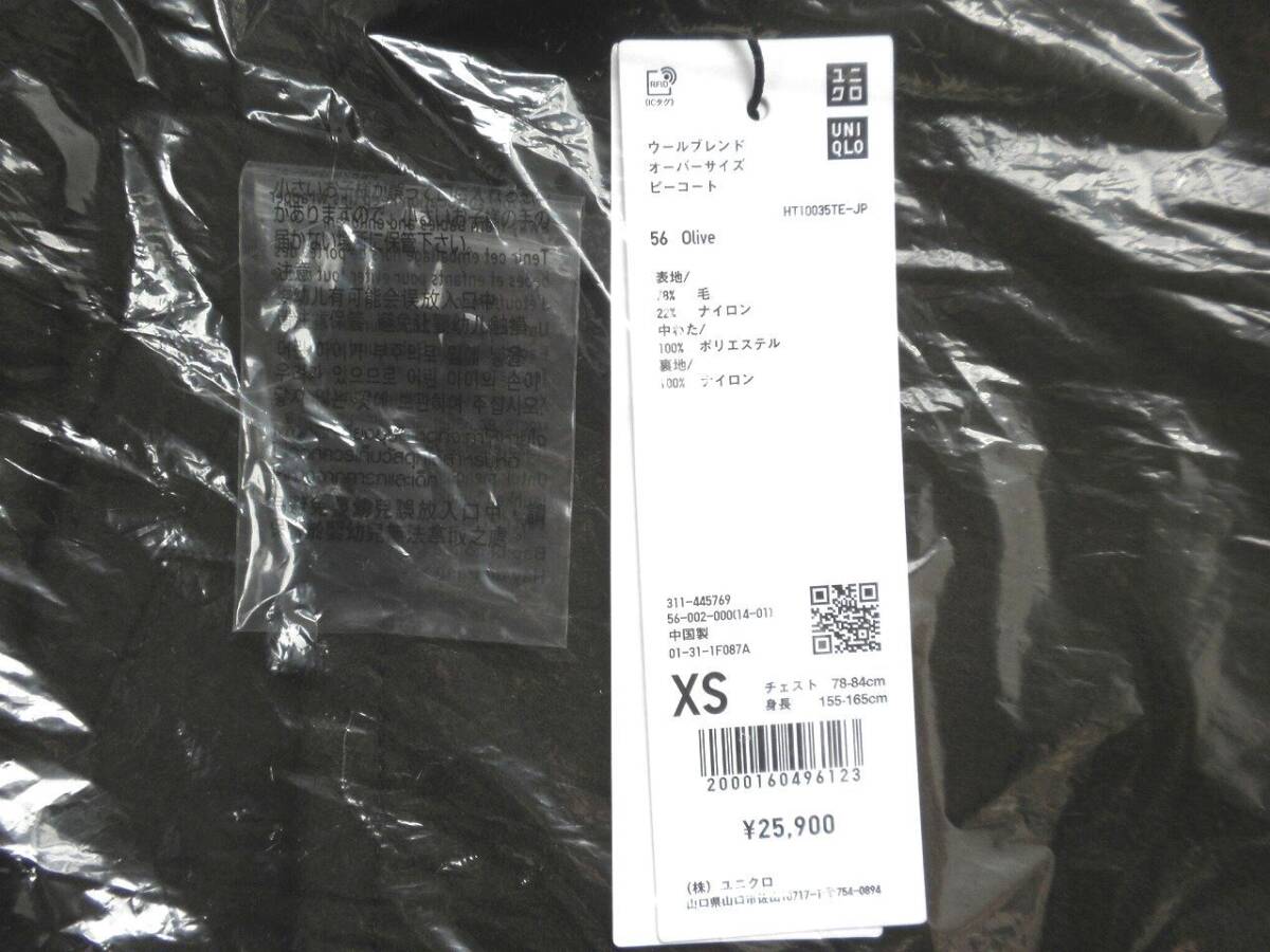 Uniqlo +J MEN 21AW ウールブレンド オーバーサイズピーコート 新品タグ付 OLIVE XS寸 オンライン店限定サイズ 現品限り