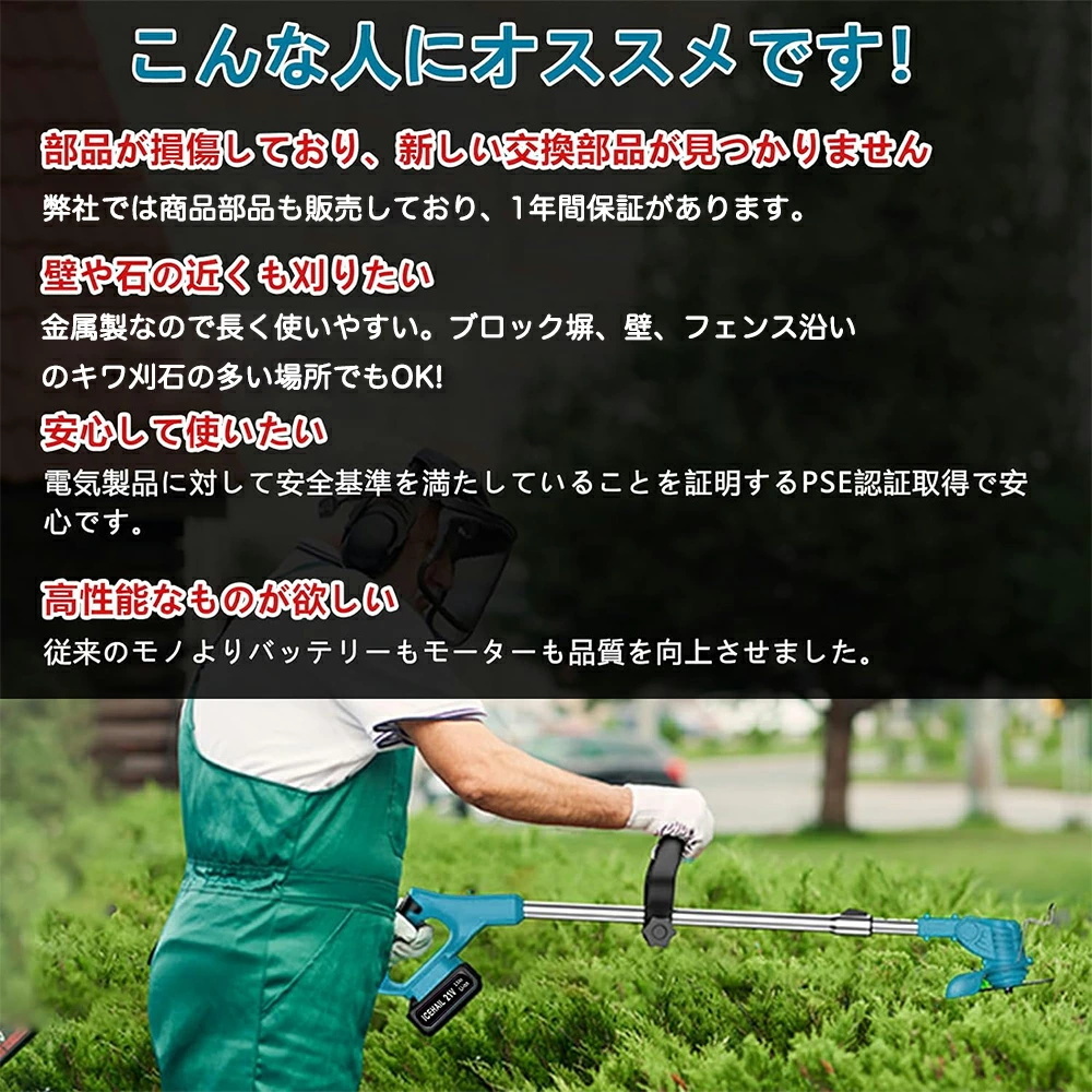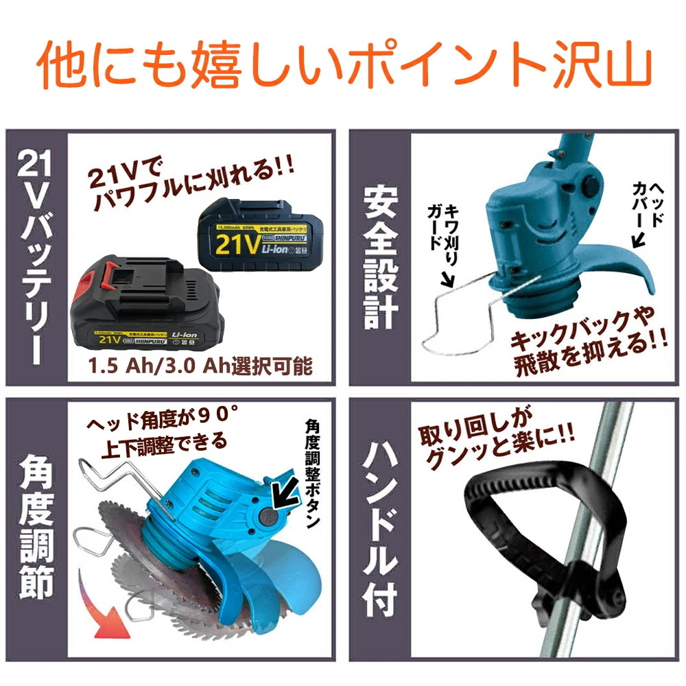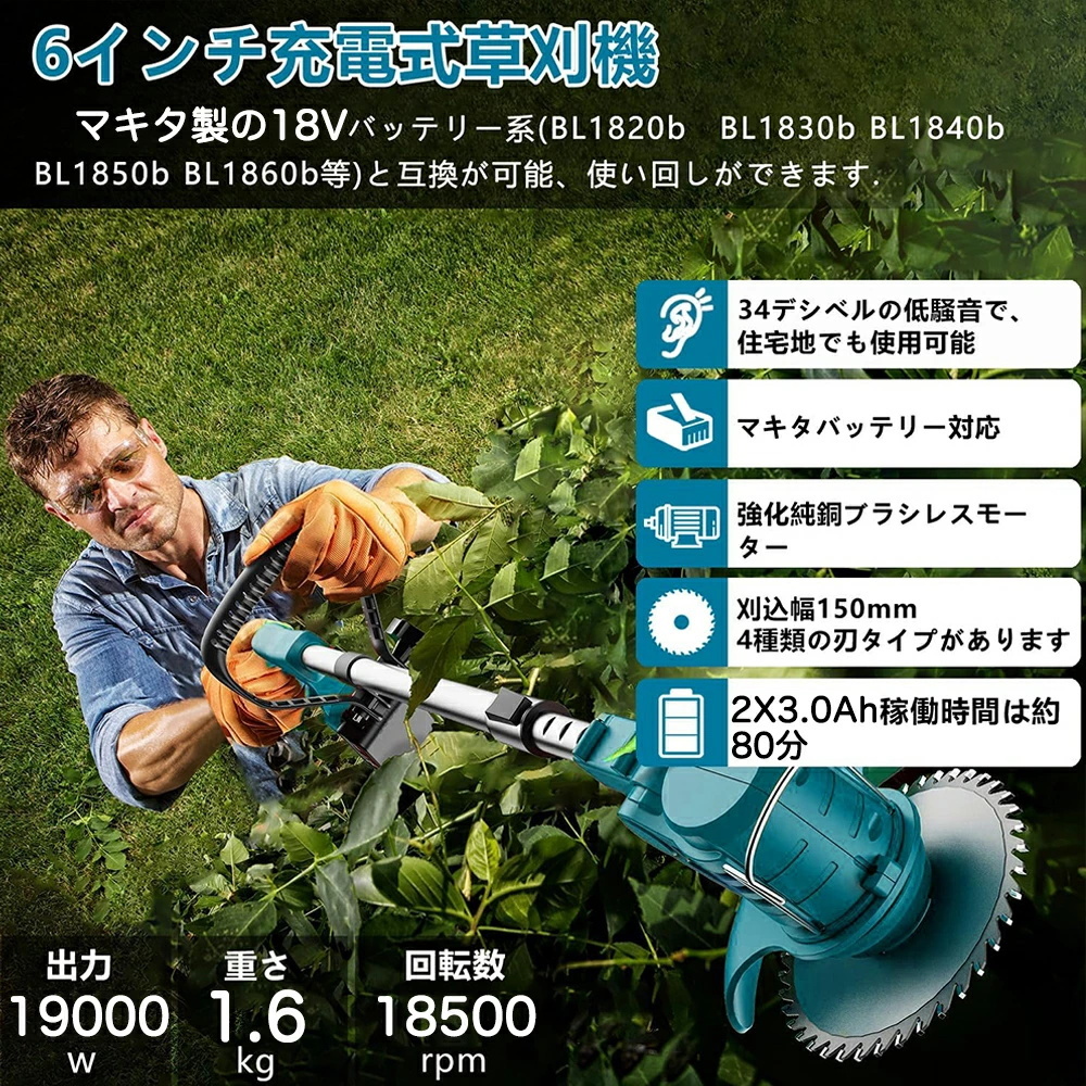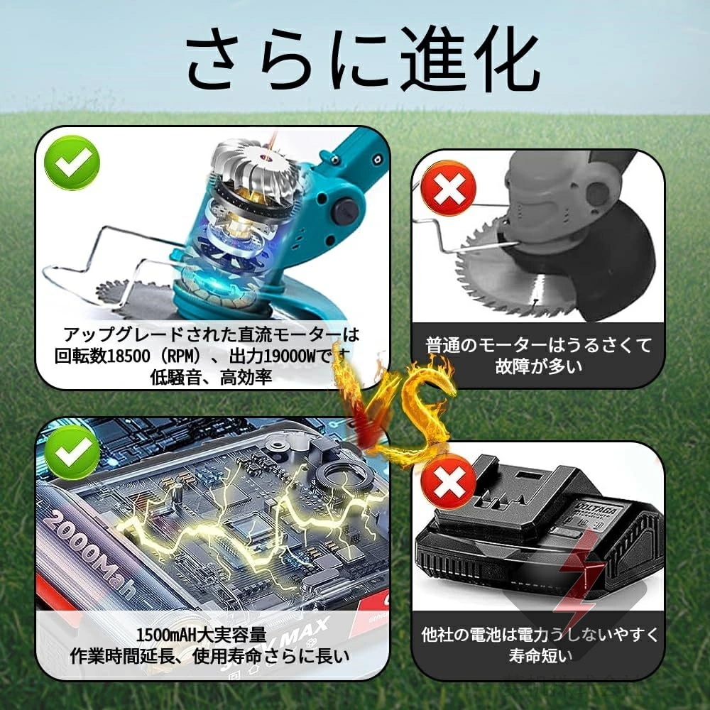 草刈り機 充電式 コードレス 電動 草刈機 マキタバッテリー互換 電動 除草 ナイロンコード 園芸 女性 軽い 家庭用 充電器1個 バッテリー1個