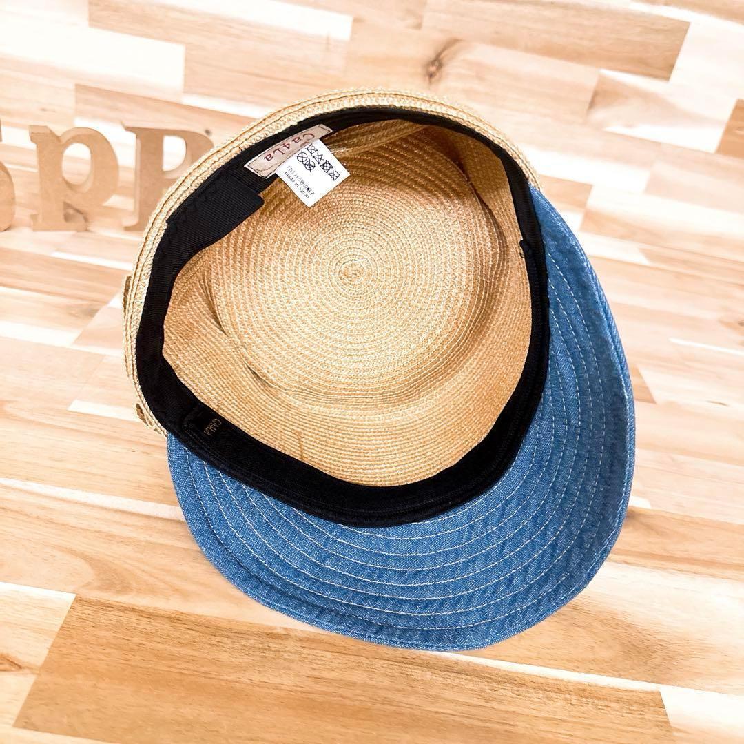 メンテナンスがし易く、軽量なポリ繊維を編み込んだボディーに淡い色味のブルーデニムのブリムを組み合わせた涼しげでカジュアルなルックス。同色、同素材のサイドリボンが横顔にほんのりとアクセントをつけてくれるCA4LAのキャスケットです。今ではたいへん珍しい「バラ色の帽子」時代の大人可愛いお品です。また、おでこ部分にCA4LA純正の汚れ防止用のテープを貼っておりますが、簡単に取り外すことが可能ですので必要がない場合には、取り外しご着用くださいませ。