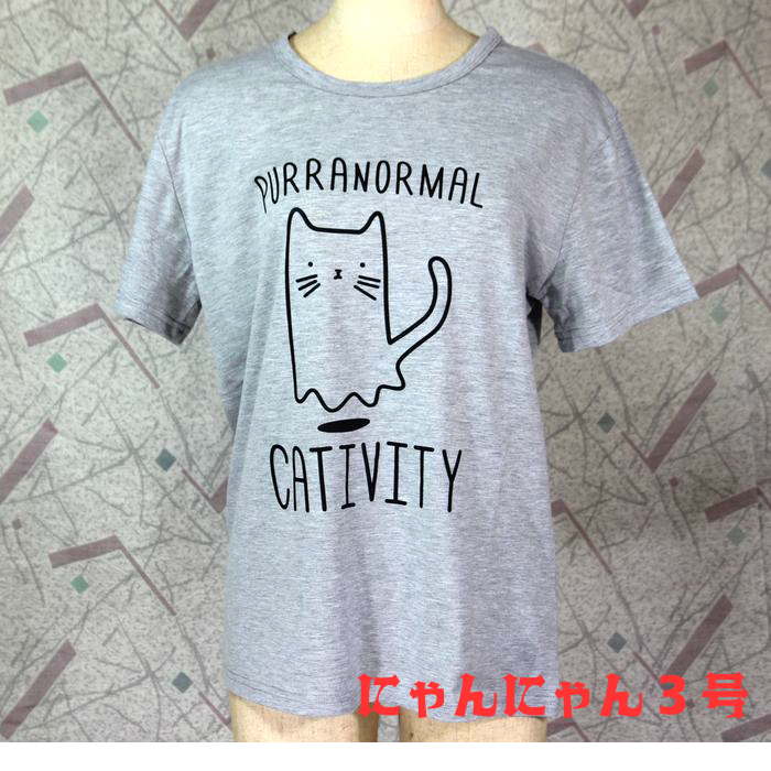 ◆猫が好き◆猫Tシャツ にゃんにゃん3号 PURRANORMAL グレー サイズ:М