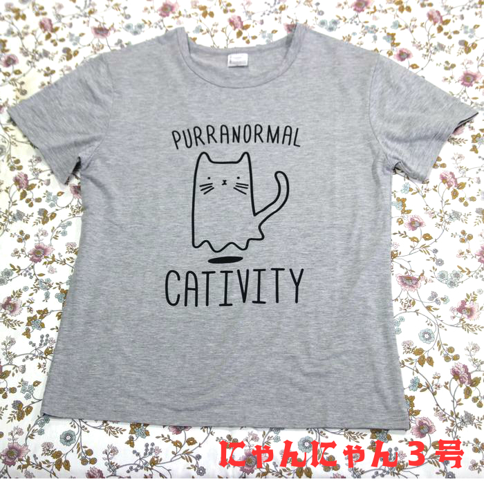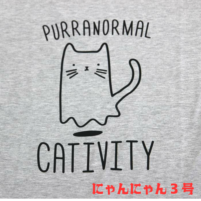 ★猫好きにはたまらない!猫柄Tシャツ★かわいいイラスト にゃんにゃん3号 PURRANORMAL グレー サイズ:М