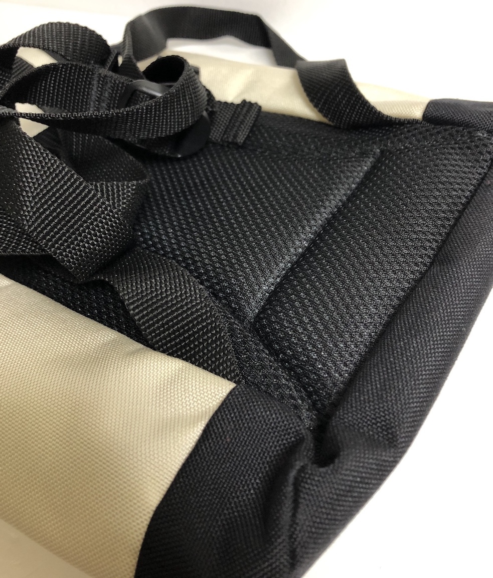 フロントポケット、メインポケットのシンプルな作りで背面にはクッションが充てられています。