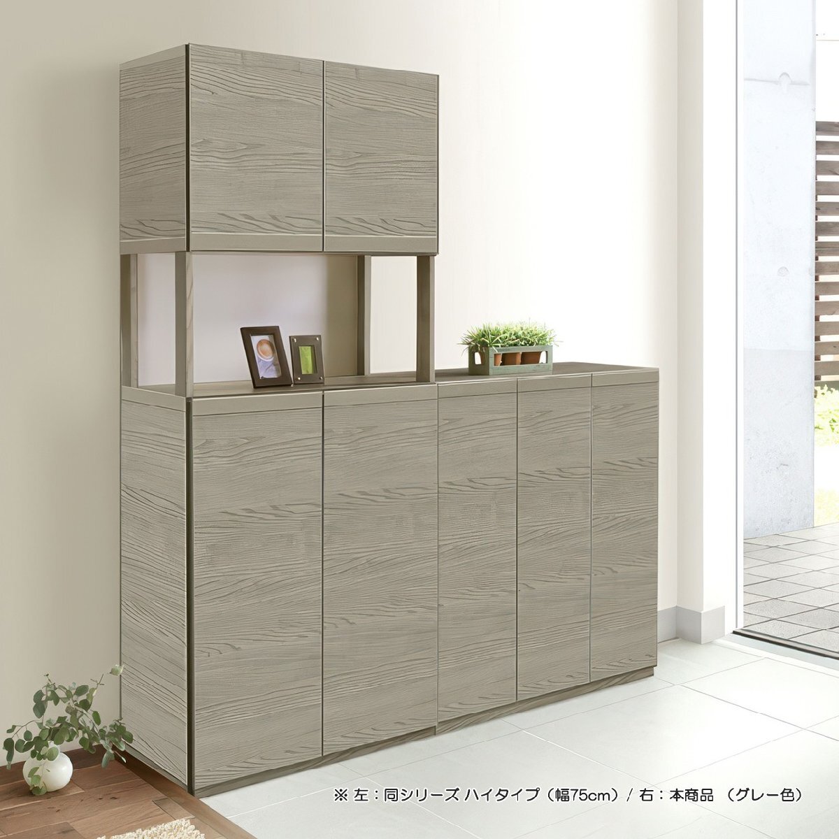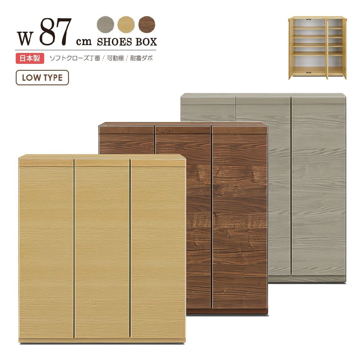 下駄箱 シューズボックス 完成品 日本製 ロータイプ 大容量 幅87cm 木製 おしゃれ 玄関収納 可動棚 グレー