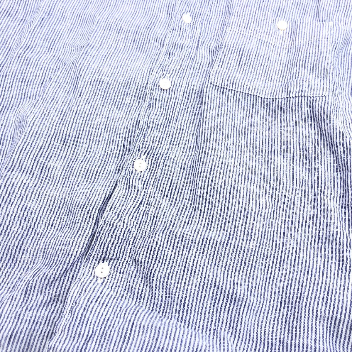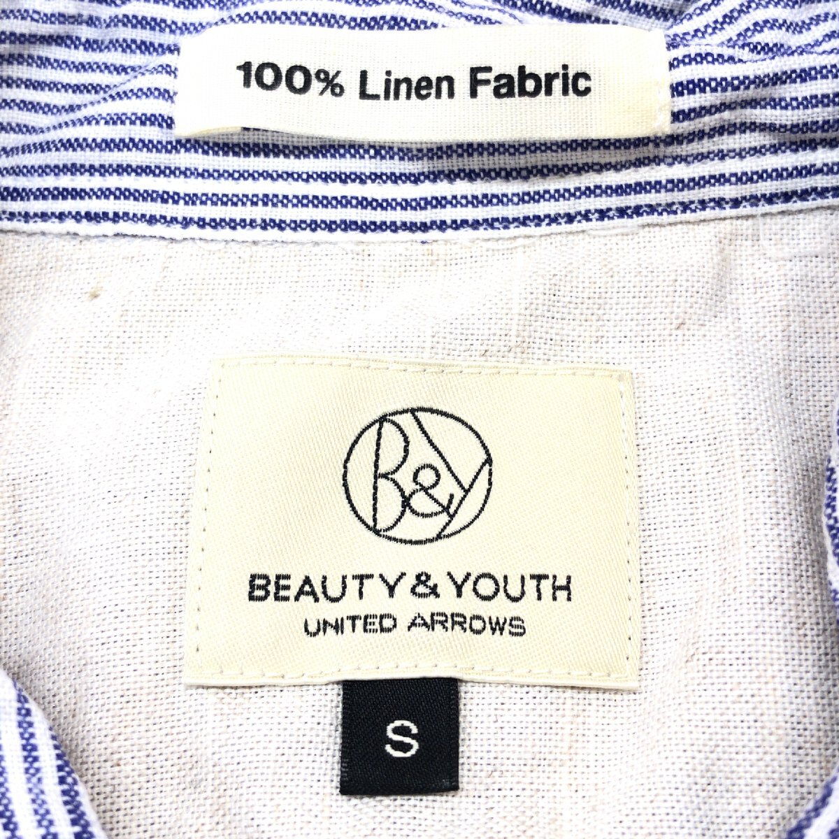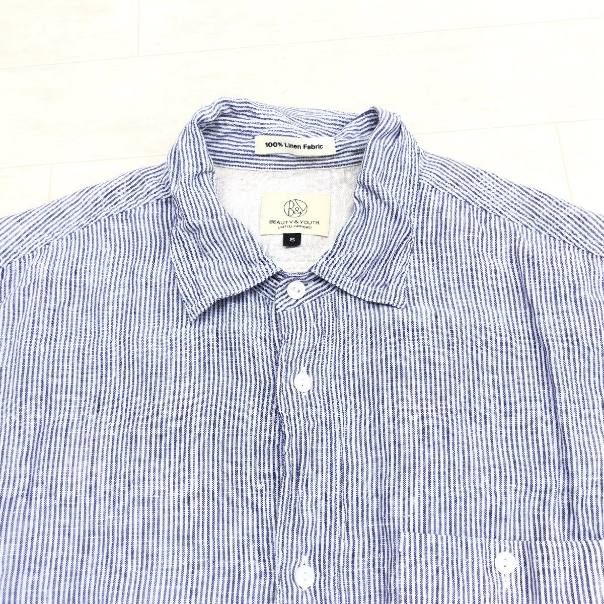 B&Y UNITED ARROWS ユナイテッドアローズ 清涼感 ストライプ 麻 リネン100% シャツ S 紺系 ネイビー系 七分袖 涼しげ カジュアル メンズ