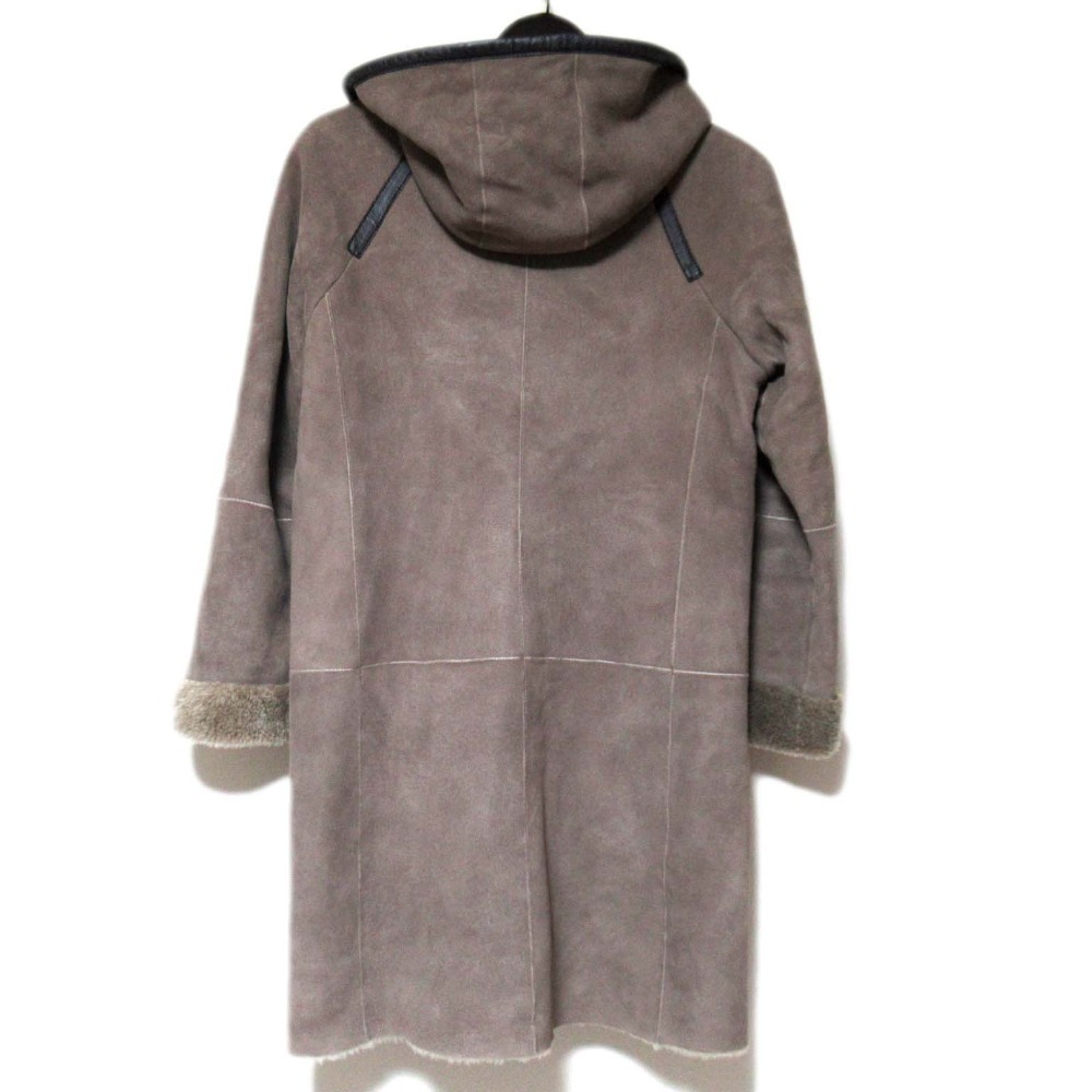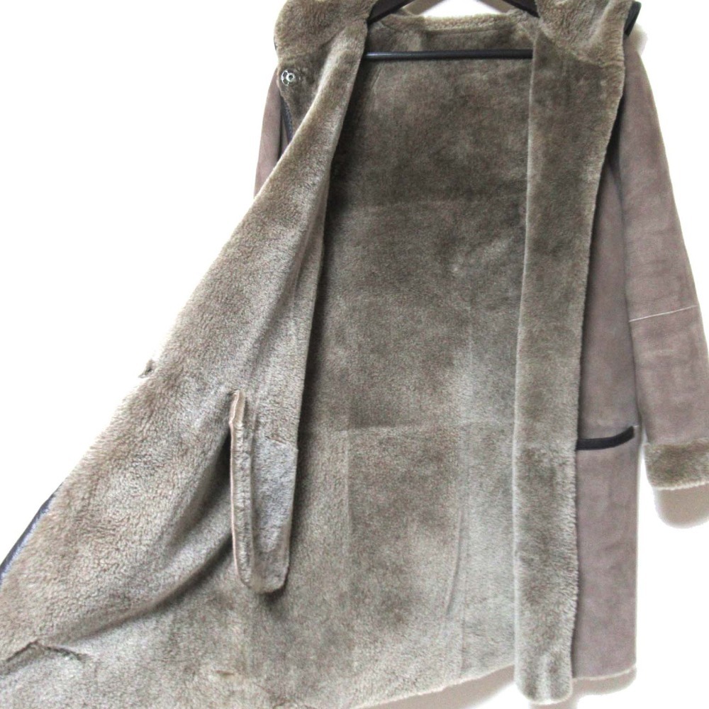 良品 23区 スナップボタンフロント ムートンコート フーディーコート サイズ38 モカブラウン