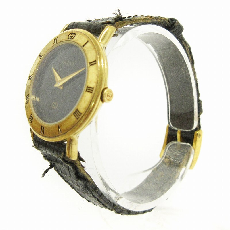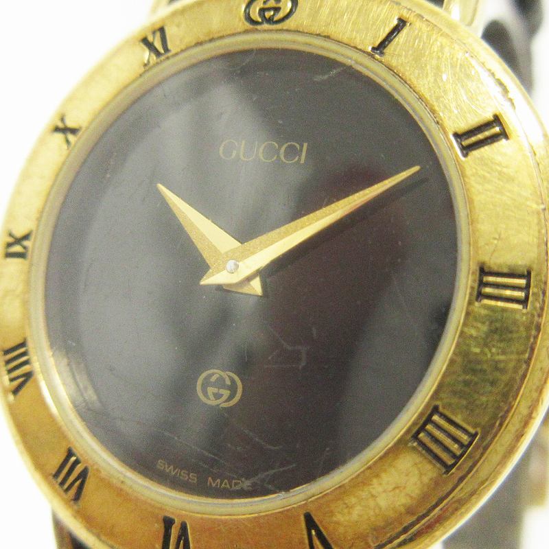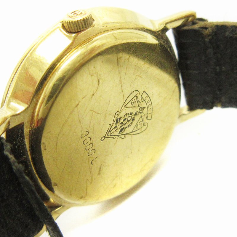 グッチ GUCCI 腕時計 クォーツ アナログ 2針 3000L 文字盤黒 ブラック 小物 レディース