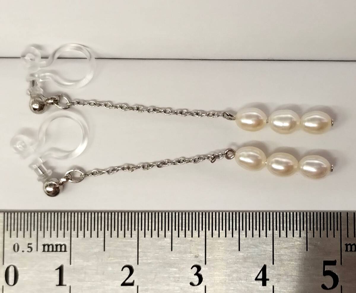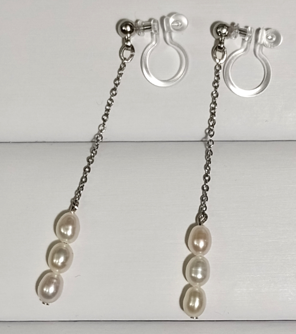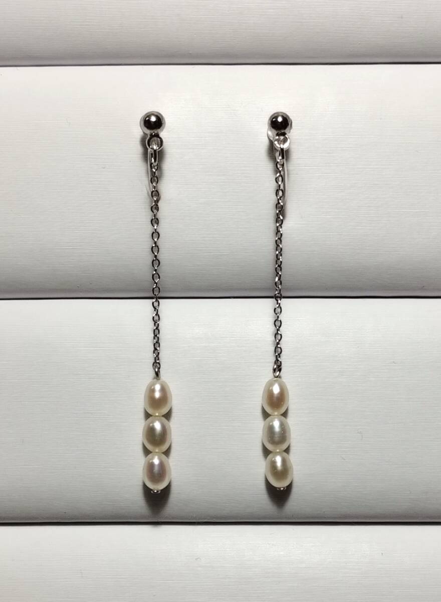 ◆淡水真珠 淡水パール バロック ライスパール 3連パール ノンホールピアス シルバーカラー ピアス風イヤリング クリップ B78