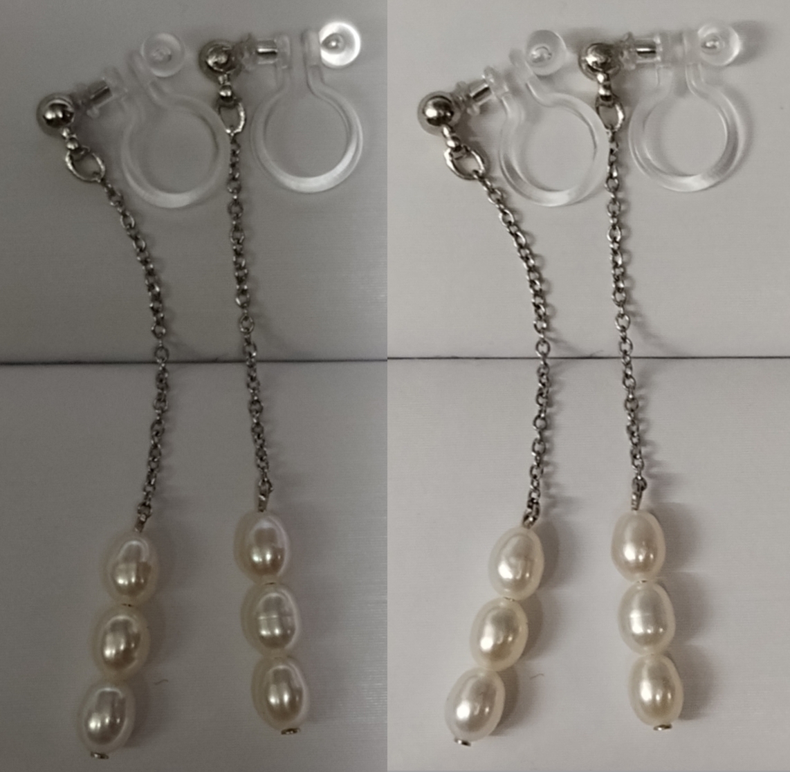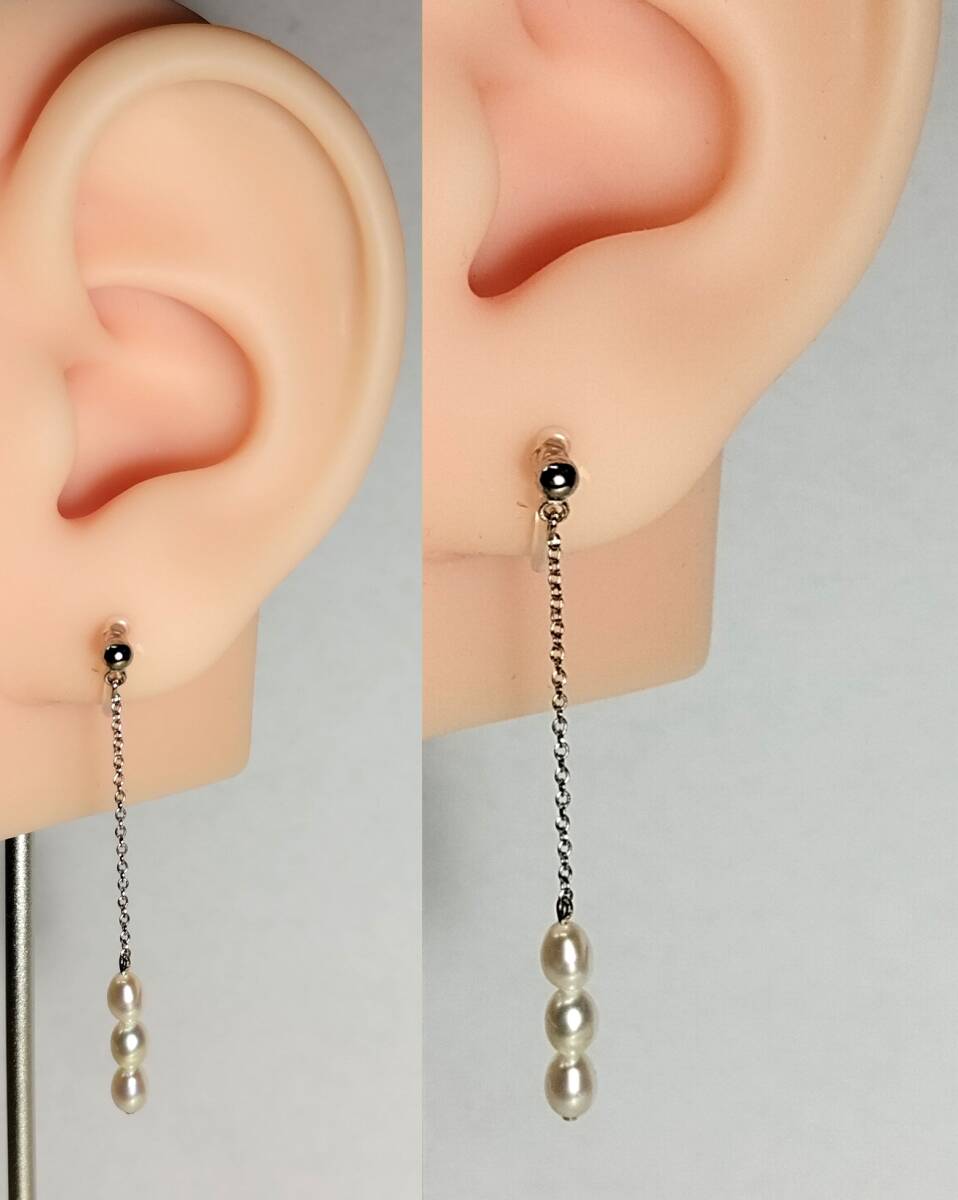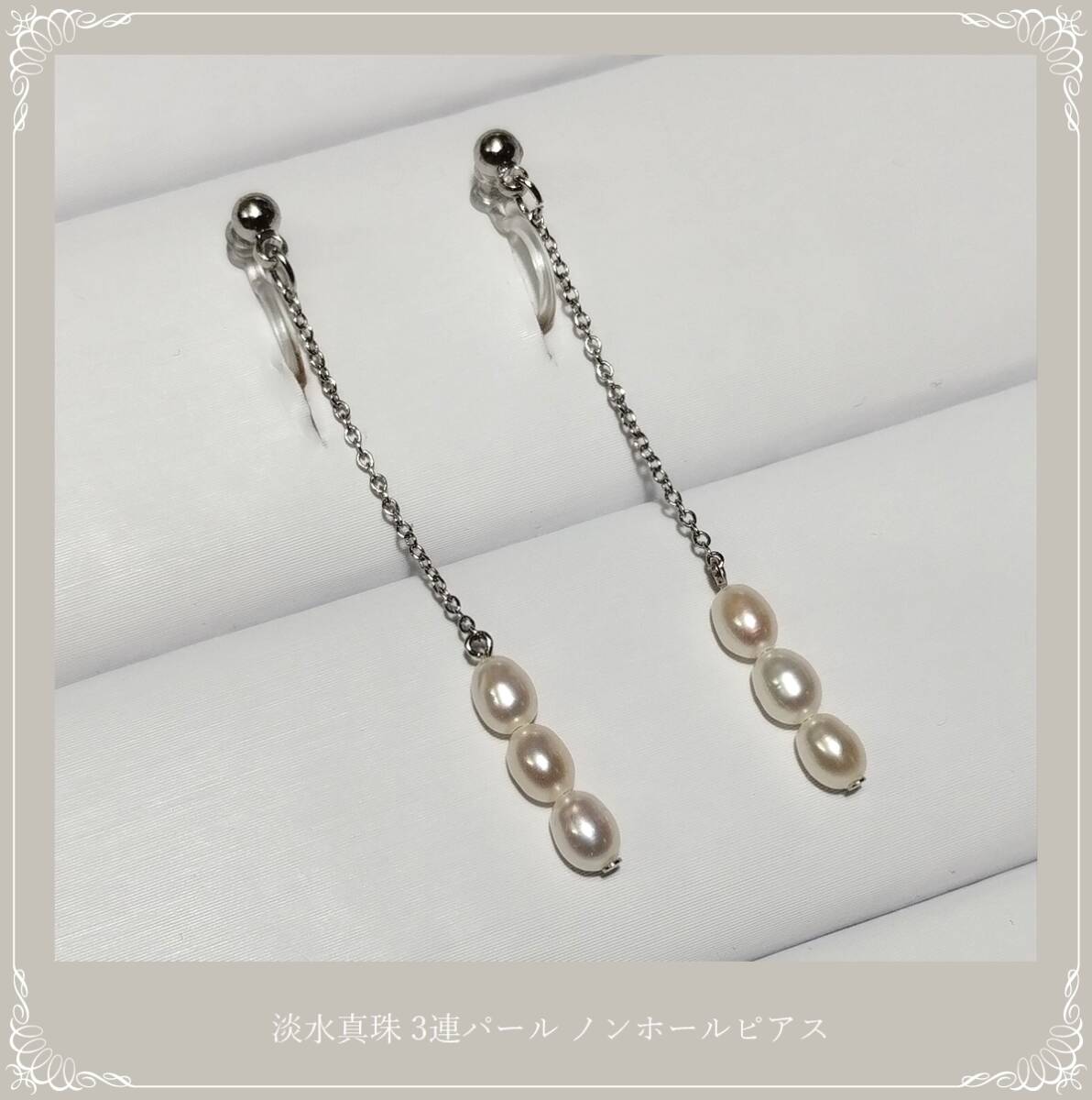 ◆淡水真珠 淡水パール バロック ライスパール 3連パール ノンホールピアス シルバーカラー ピアス風イヤリング クリップ B78