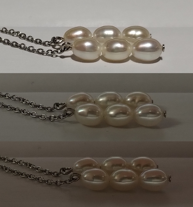 また、淡水真珠として購入しておりますが、鑑定に出して真贋を確かめてはおりませんし、鑑定書も出せません。