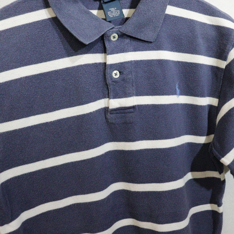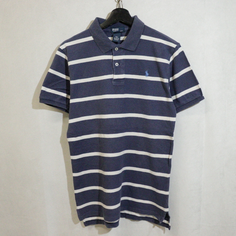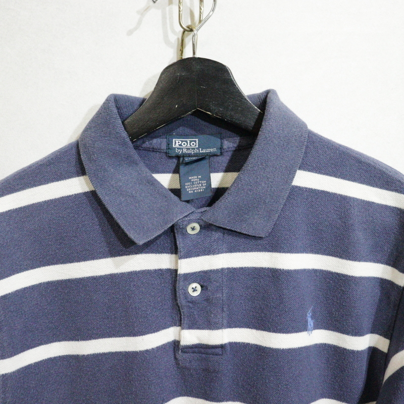 商品名 a703 2000年代製 ラルフローレン 半袖ポロシャツ■00s 表記ボーイズLサイズ ネイビー 紺 ボーダー カノコ LC アメカジ 古着 古着卸 90s