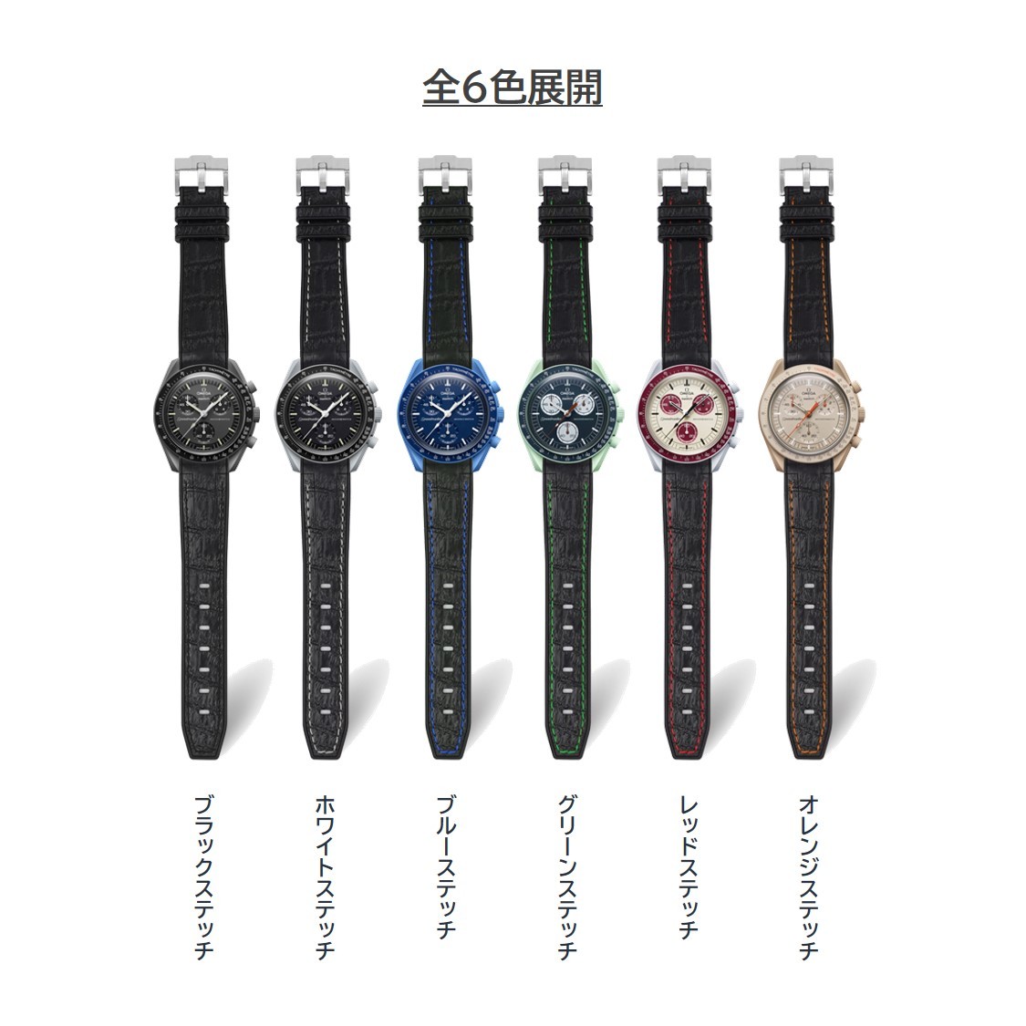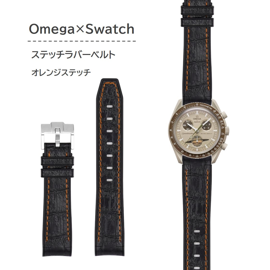 Omega×Swatch用 クロコ型押しラバーベルト オレンジステッチ