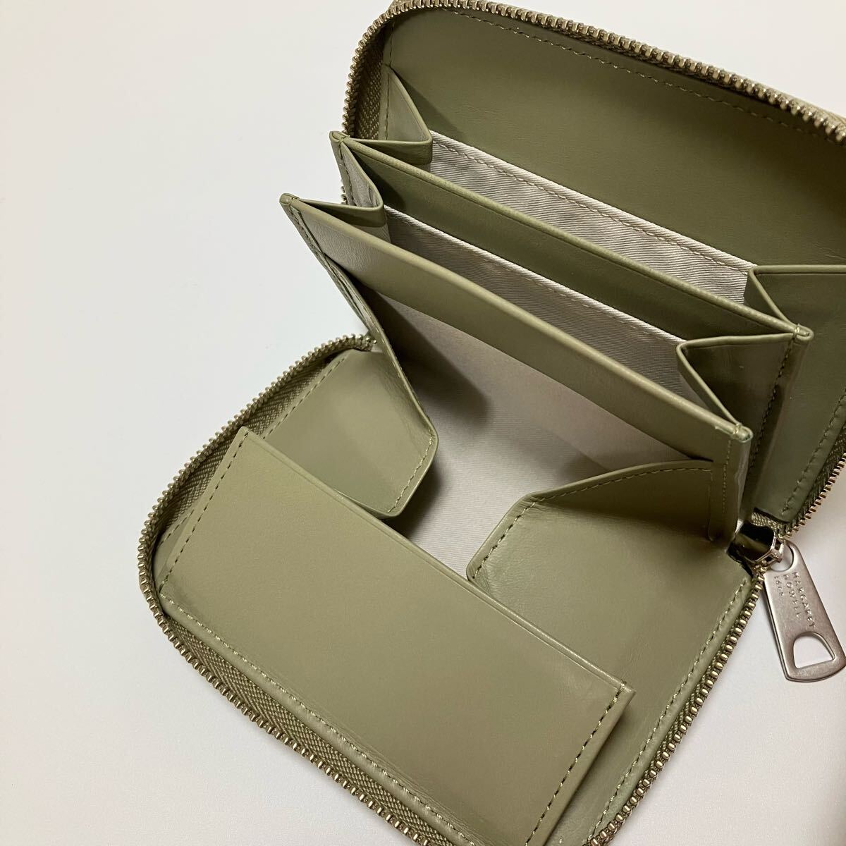 ・商品コメント:柔らかな手触りのレザーを使用したラウンドファスナー折り財布。小銭が見やすく取り出しやすいボックス型のコイン収納。ポケットへの収まりが良いコンパクトなサイズ感です。