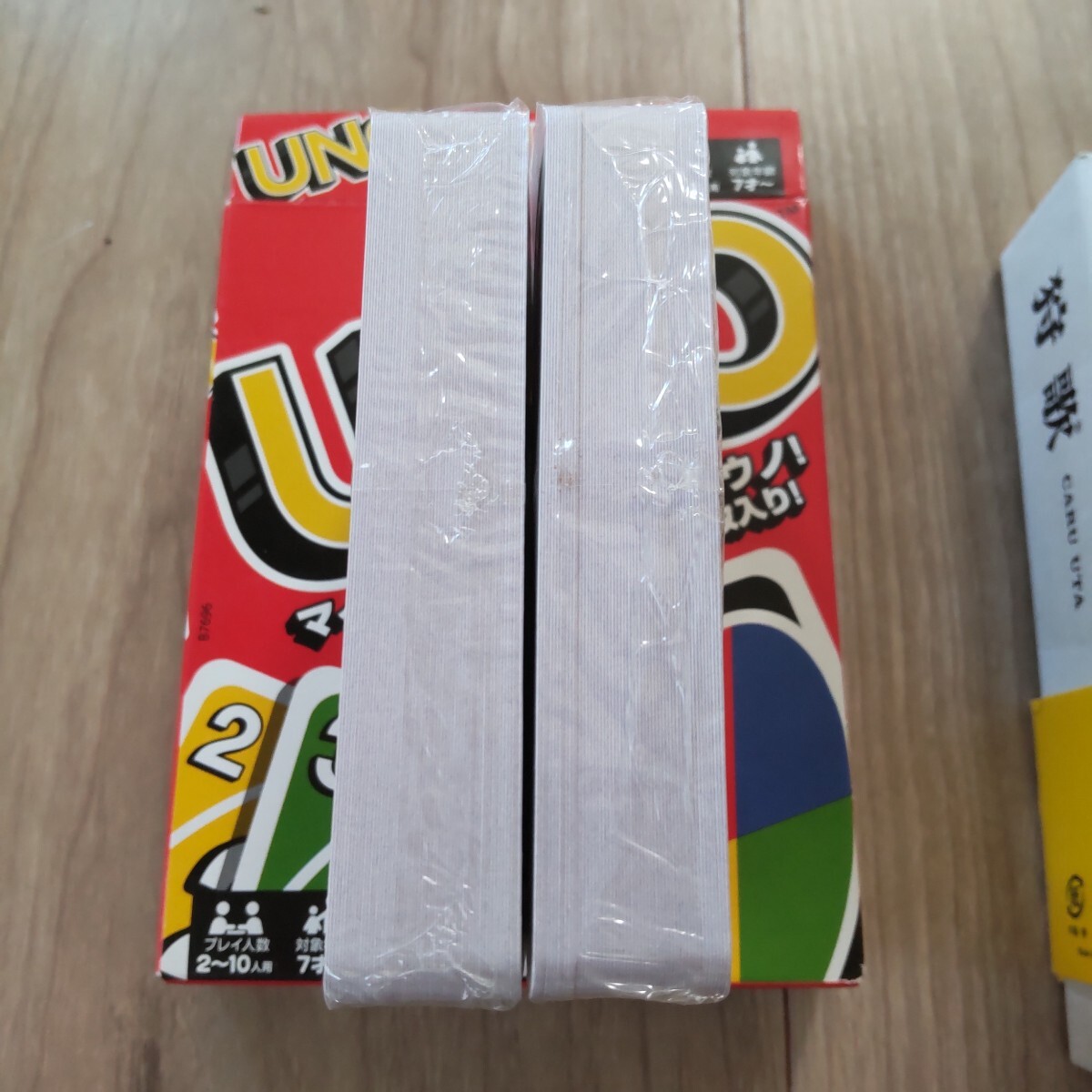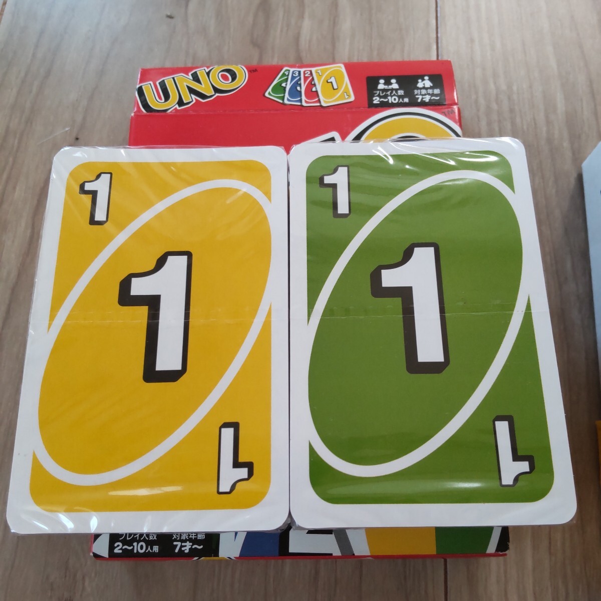 UNOは箱は開けてありますが、中身のカードは未使用です。箱にスレや小傷はあります。