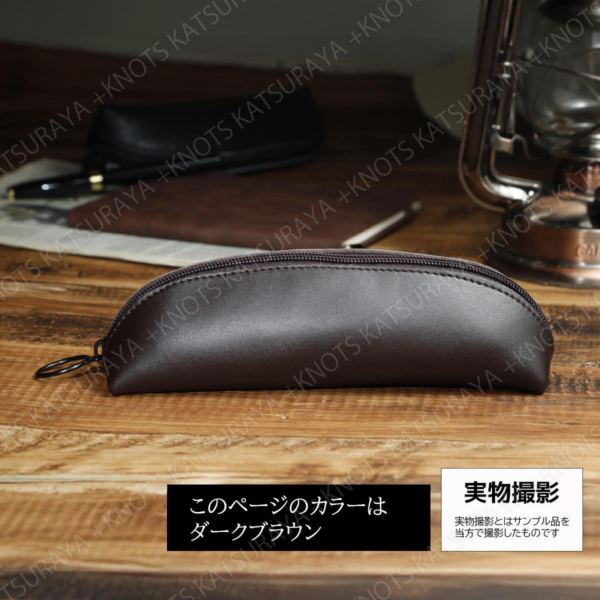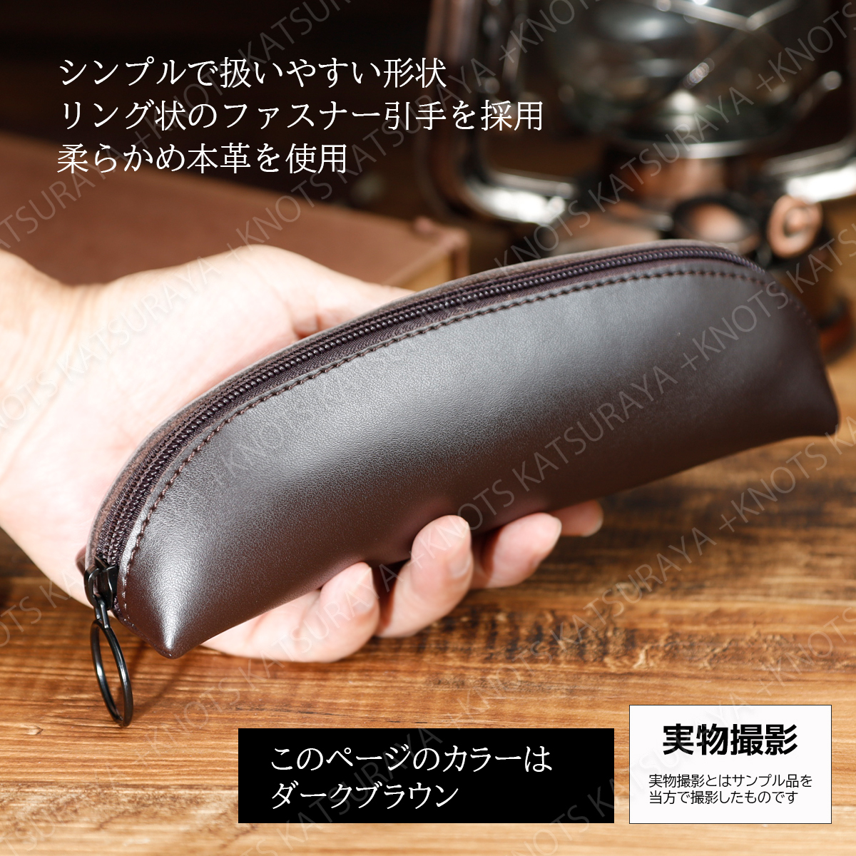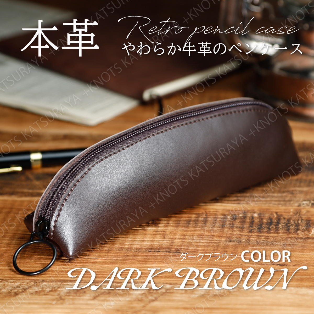 本革 大容量 ペンケース 筆箱★ダークブラウン★やわらかめレザー レディース メンズ 男女兼用 ペン入れ筆入れ ペンポーチ 大人用 牛革a460
