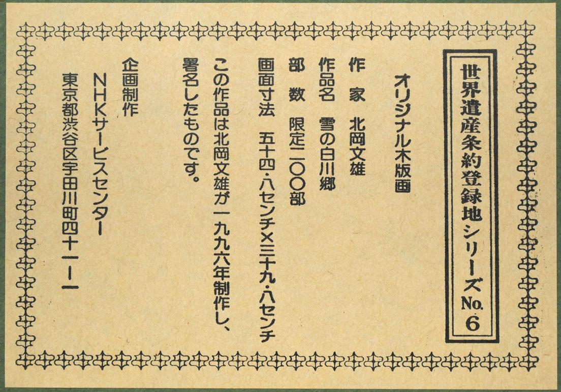【タイトル】 雪の白川郷(世界遺産条約登録地シリーズNo,6)