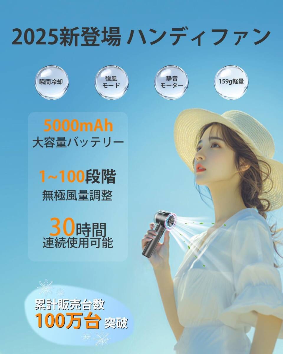 ハンディ扇風機 手持ち 瞬間冷却 3in1 ミニファン 100段階風量調節 携帯