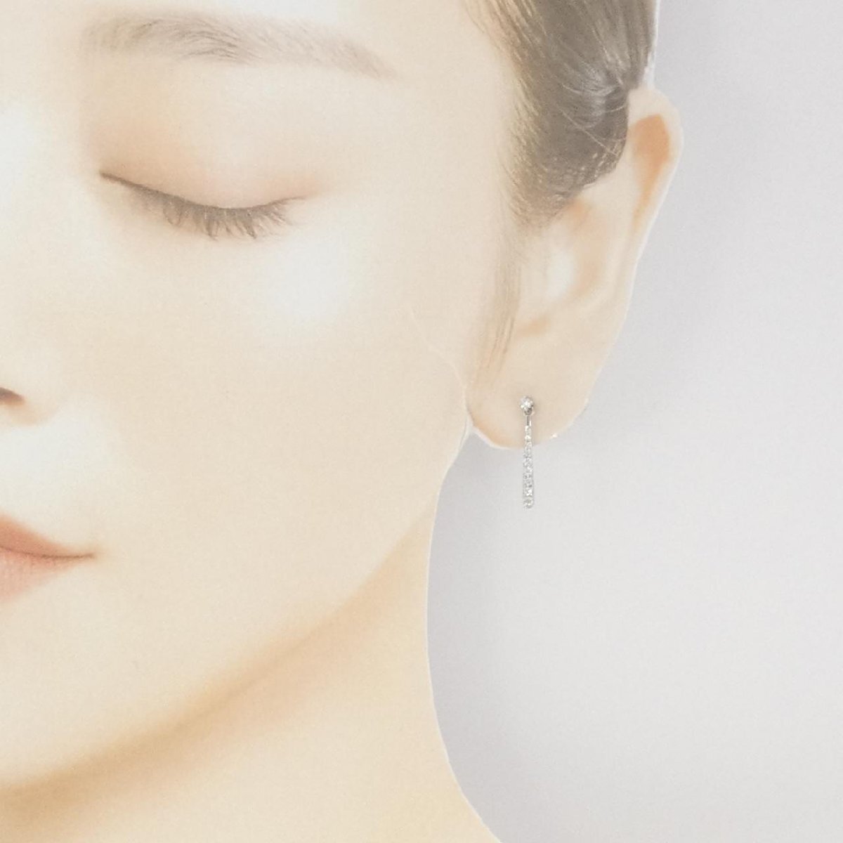 細かく輝くメレダイヤをセッティング。揺れると光を放ち目を惹くピアスです。