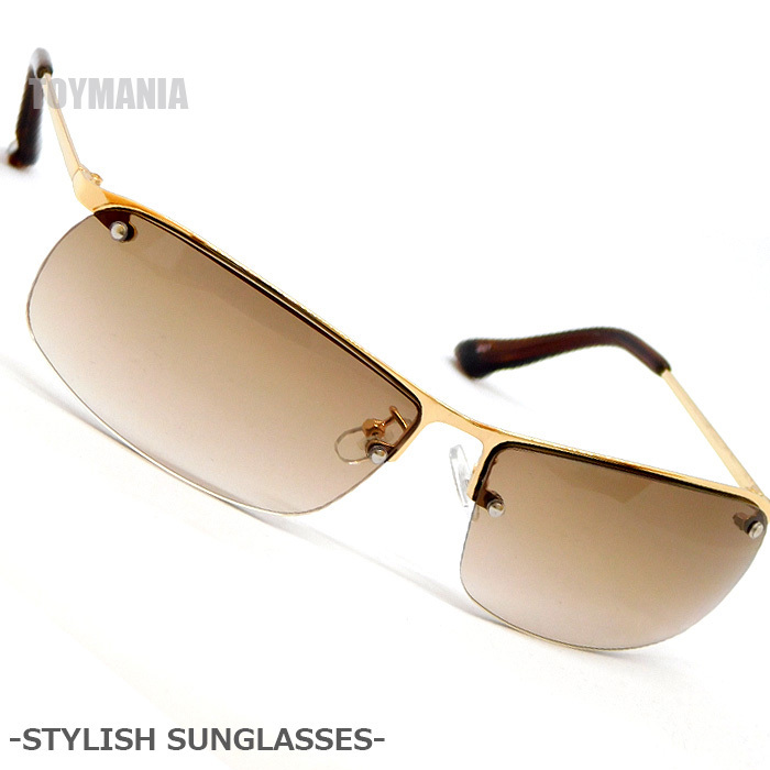 送料無料 新品 ちょい悪系 オラオラ系 サングラス メンズ ハーフリム ナイロール型 ブルー 伊達眼鏡 伊達メガネ UVカット ブラウンハーフ★