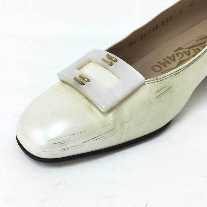 | 商品説明 | 【管理番号】 009088 【ブランド名】 Salvatore Ferragamo 【アイテム】 スクエアパンプス 【サイズ】表記 5(22.5cm) ヒール約3cm 【色・柄】 パールホワイト 【素材】 レザー 【付属品】 保存袋 箱 【外観ランク】Bランク 【商品補足説明】 右足つま先の内側に擦れたような黒い汚れがあります。全体的に黄色っぽい汚れがあります。 | ||