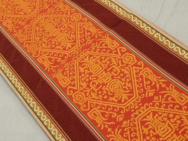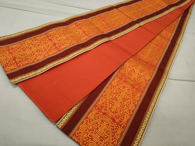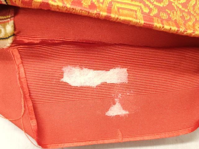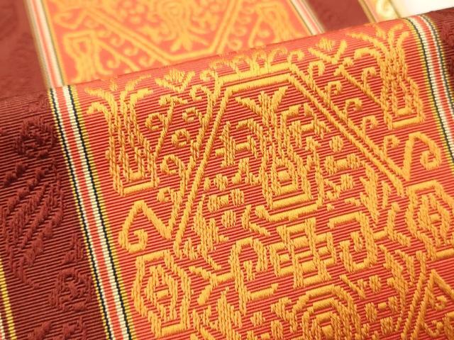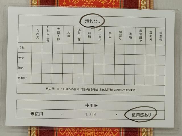 【正絹】 詳細に関しましては、画像をご確認ください。 本場筑前博多織は、福岡県福岡市博多区やその周辺で生産される絹織物です。 仏具のひとつである独鈷、華皿を基にした幾何学模様が織られています。 江戸時代に筑前藩主だった黒田長政が幕府への献上品にしたことから、 博多献上、献上博多とも呼ばれます。 経糸が緯糸を包み込んで、表面には経糸だけ出て、 横畝が際立って見える経畝織りという織りになっています。 30〜60本の細い経糸を使うため、こしやはりがあり、地合が硬く、光沢感があります。 きちんと締まり、くずれにくい、締めやすい帯といわれています。 大変上質な逸品になります。 お安く出品致しますので、是非この機会にいかがでしょうか? ※両側未かがりですが着用には問題ありません。 ※証紙の剥がし跡がございます。 |