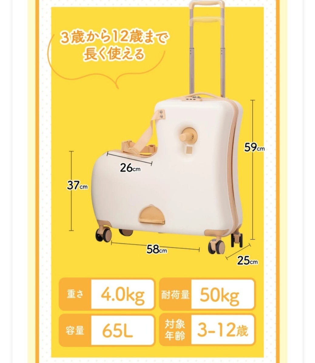 旅行の際、子供が乗れるスーツケースとして話題のキッズトラベルキャリーケースです。