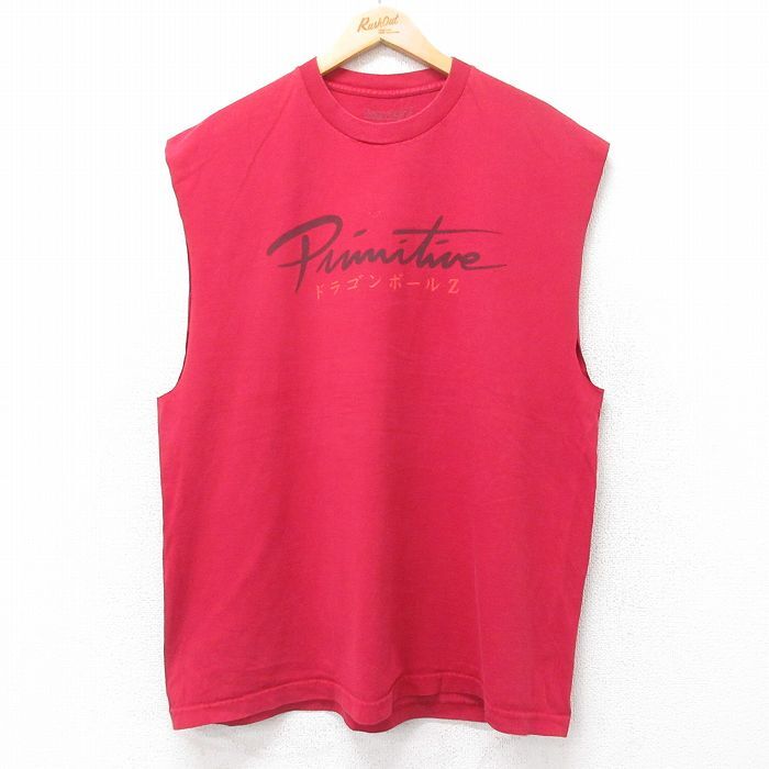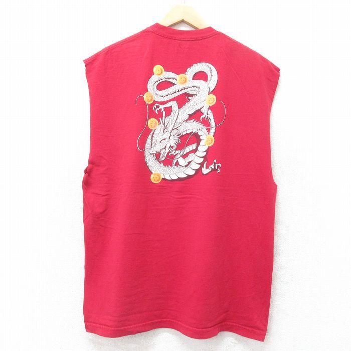 【商品名】 XL★古着 ノースリーブ Tシャツ メンズ アニメ ドラゴンボール 神龍 コットン クルーネック エンジ系
