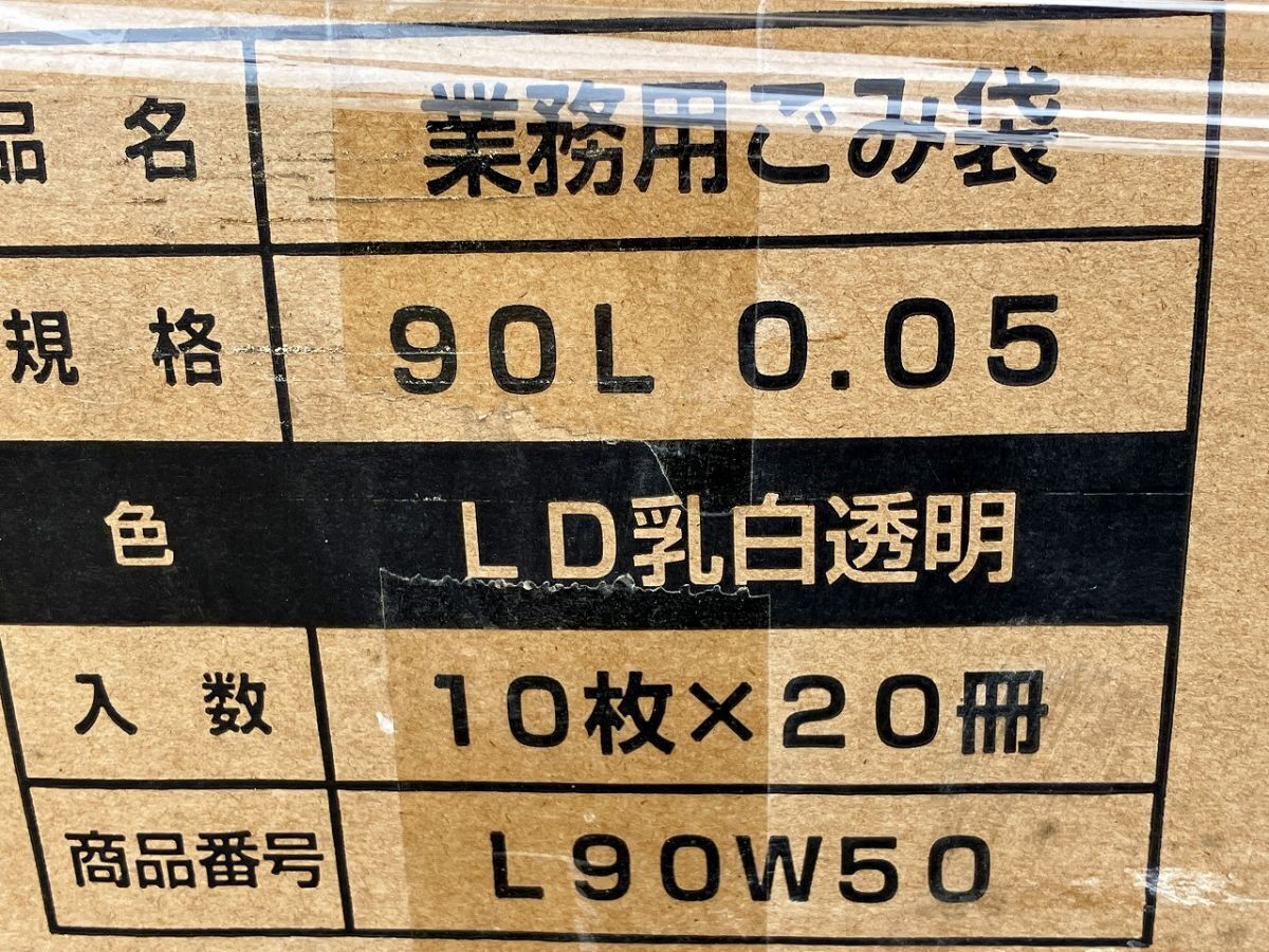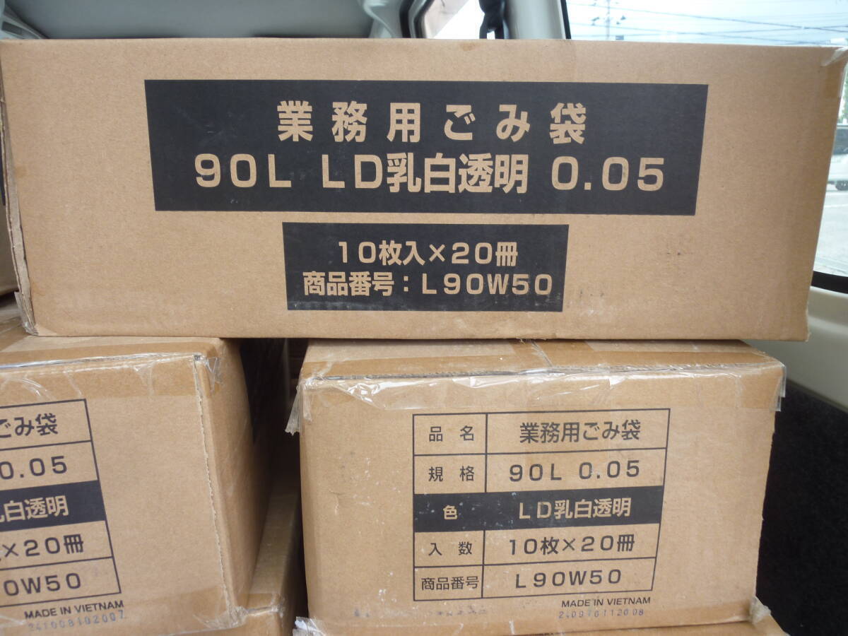 未使用 送料無料 90L 厚さ 0.05㎜ 業務用ゴミ袋 LD乳白透明 半透明 10枚入り20袋=200枚まとめて 1箱200枚入 L90W50 L90W50