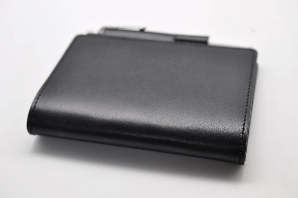 革の肌感を損なわないアニリン染めのブラックで、一番繊維の詰まったベンズ部の革です。鞣し時にオイルを浸透させた、しっとりとした中にも張りと腰のあるオイルタンニンレザーです。