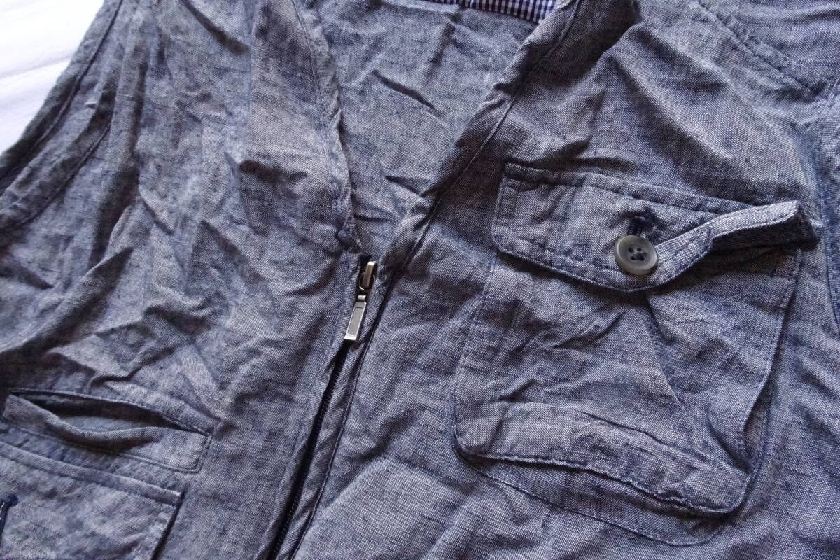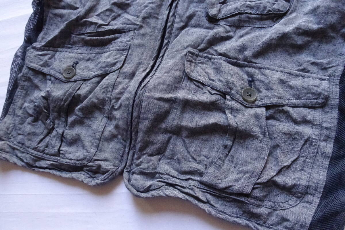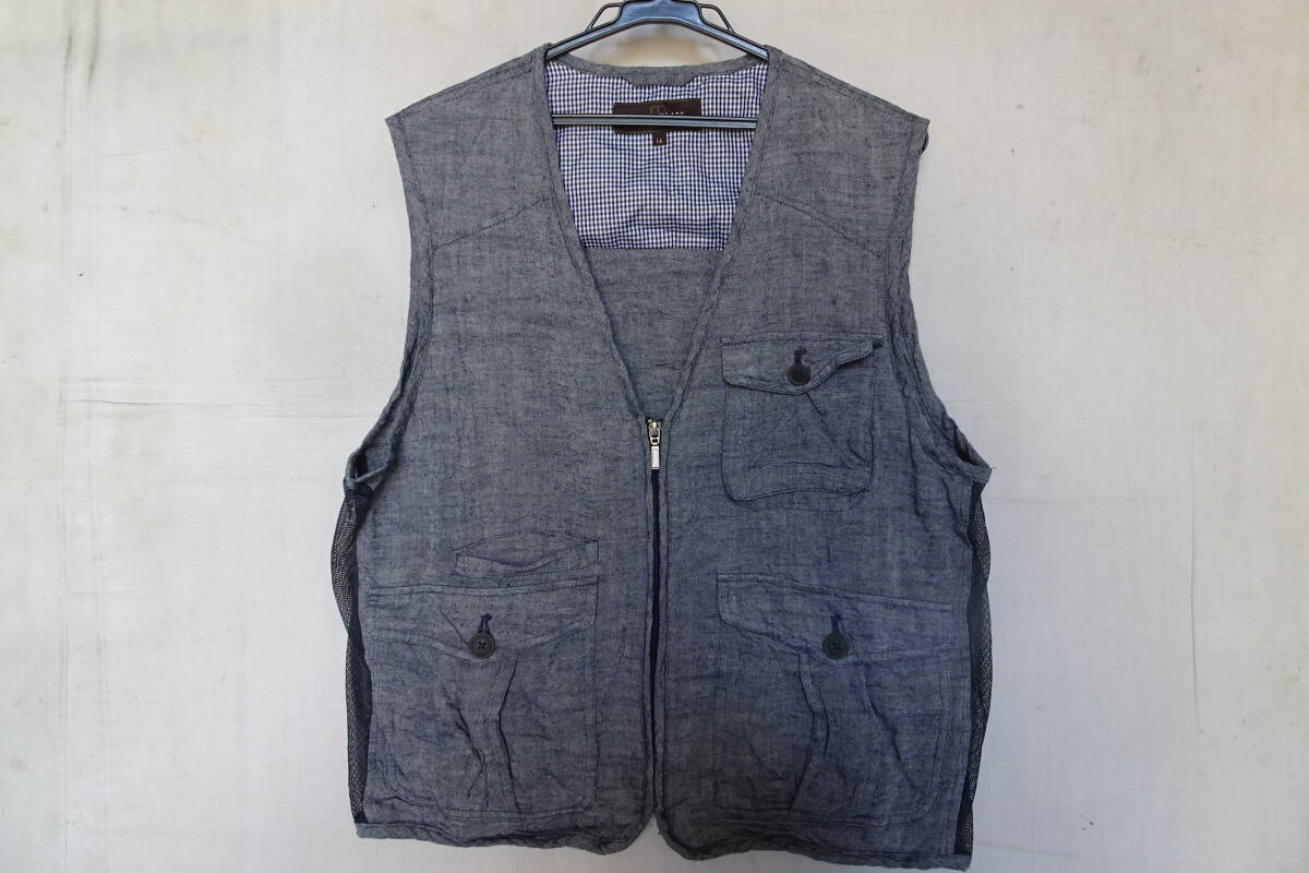 ROGER FLARE/ロジャーフレア/ベスト/ジレ/Vネック/前ジップアップ/薄手素材/脇メッシュ素材切替/ネイビー杢/LLサイズ(7/23R7)