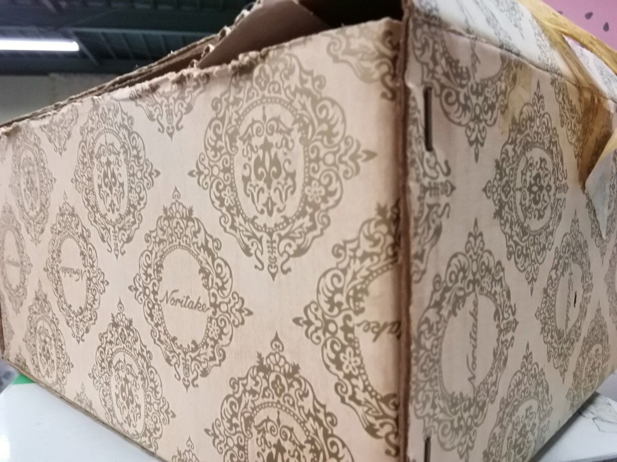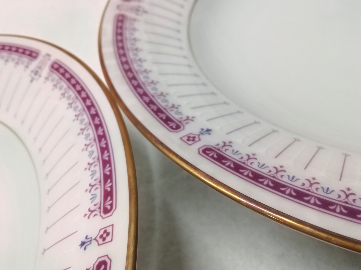 中古品です。経年による汚れ、くすみ、裏底に汚れがあります。金彩にくすみ、変色、はがれがあります。箱に汚れ、やけ、スレ、覚え書きがあります。