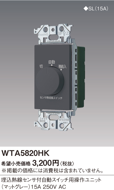 全国最安【新品】WTA5820HK アドバンスシリーズ埋込熱線センサ付自動スイッチ用操作ユニット(マットグレー)