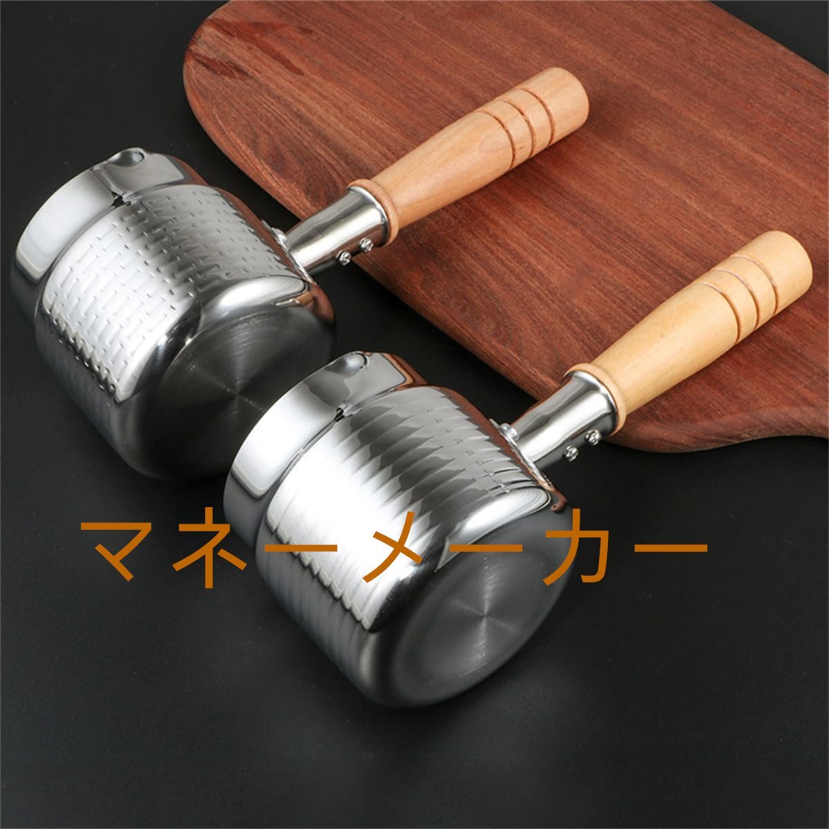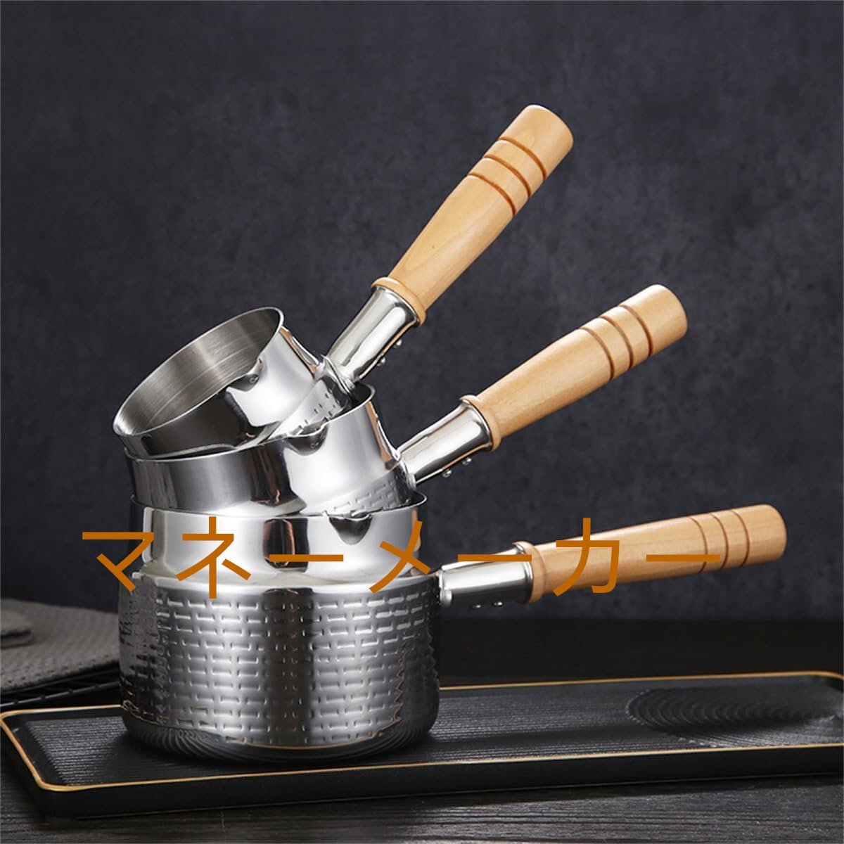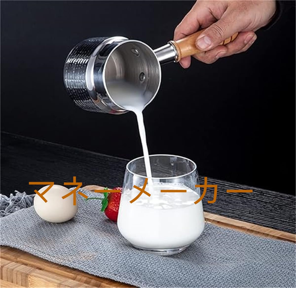 鍋 ミルクパン 片手鍋 雪平鍋 コーヒーポット おしゃれ 木製ハンドル付 多機能 ベビーコーヒー 調理器具 一人鍋 ミ (シルバー,600ml)