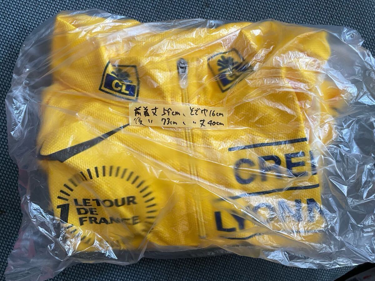 (注意) アメリカで購入したイタリア製ナイキのマイヨジョーヌ。2001年当時はまだツールでもサイクルジャージはゆったり感のある裁断でした。長期保管品になります。サイズはXLと大きいです。下記に各部サイズを参照して下さい。