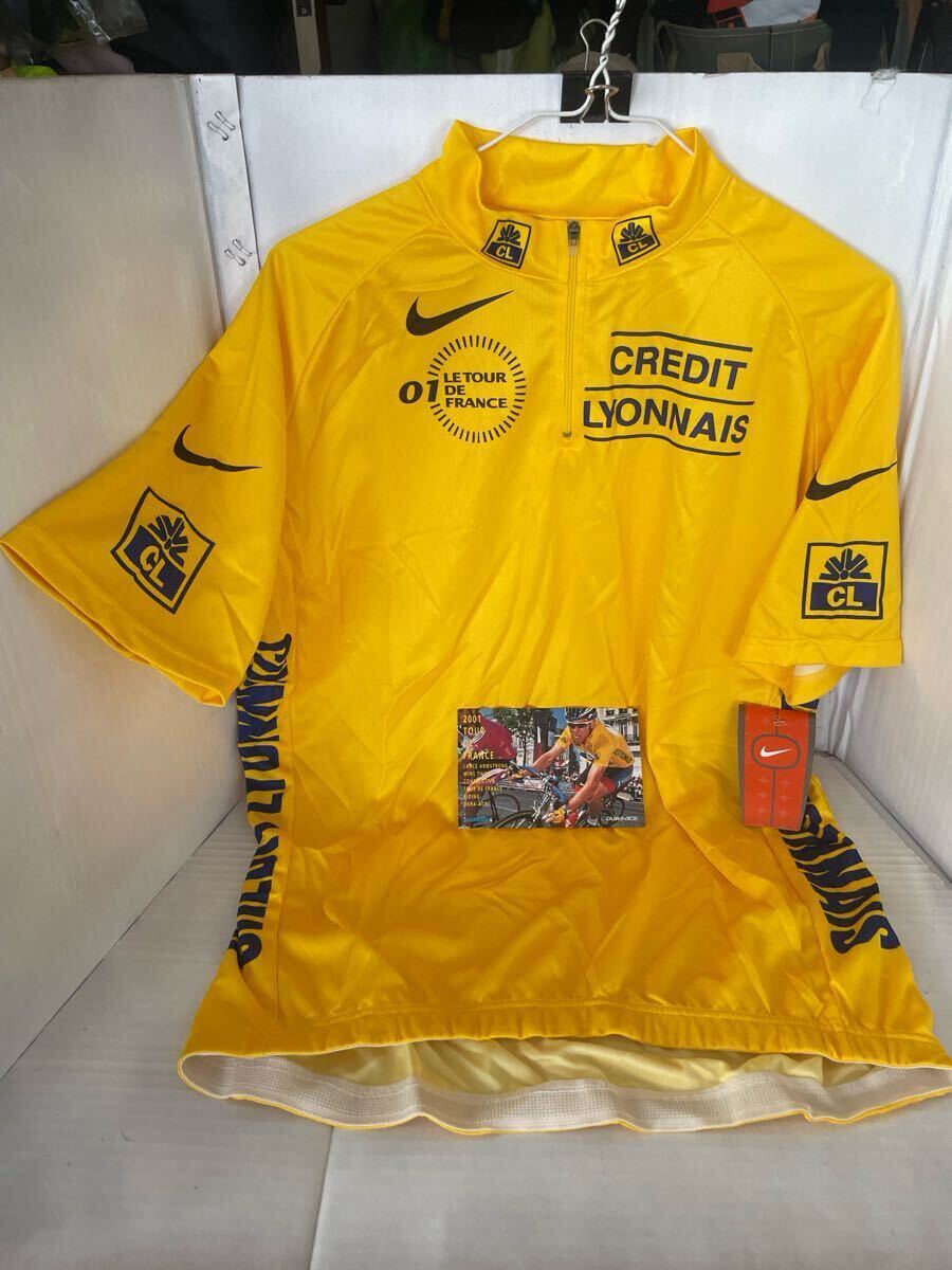 未使用品 マイヨジョーヌ Nike 2001年モデル XLサイズ シマノポストカード(ランス・アームストロング優勝記念)おまけ