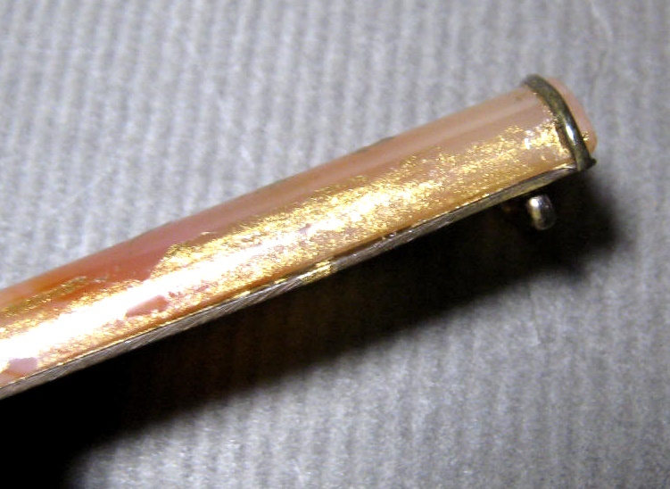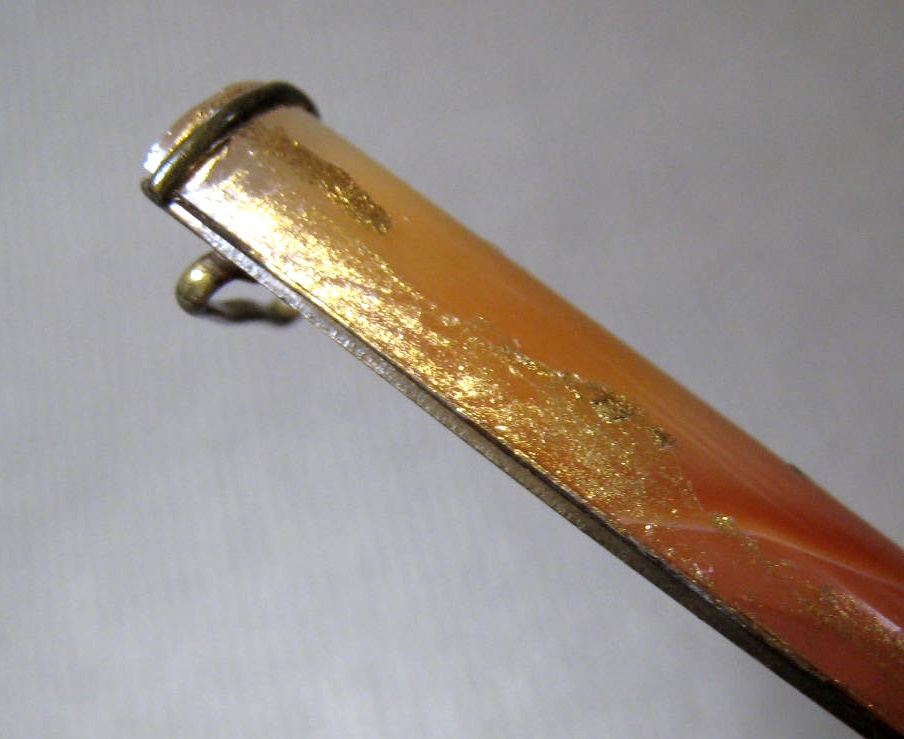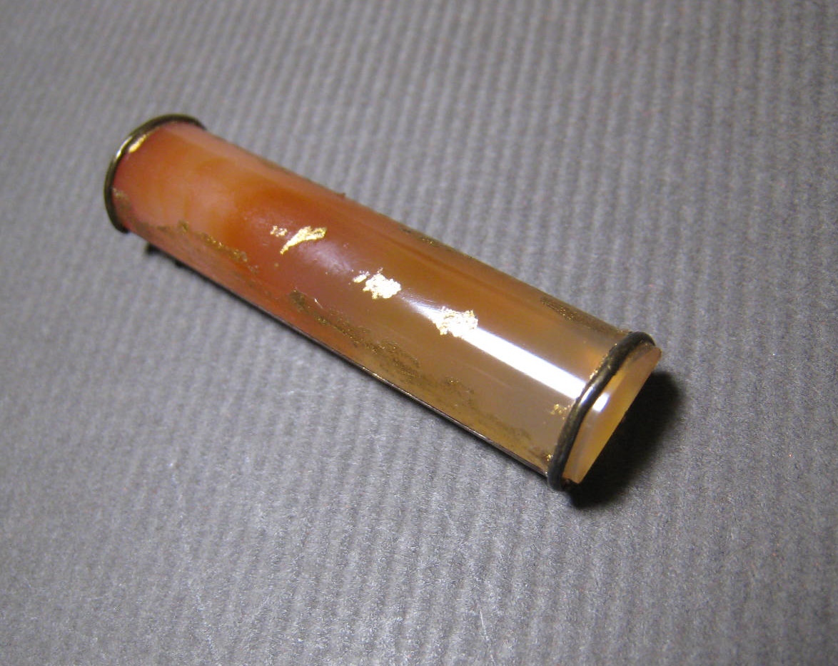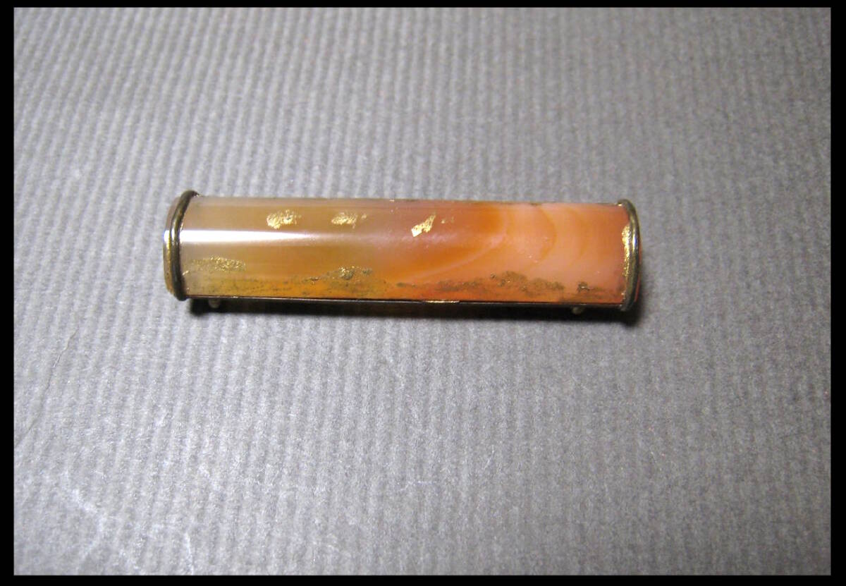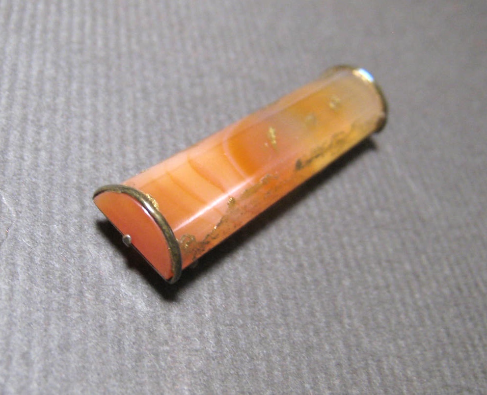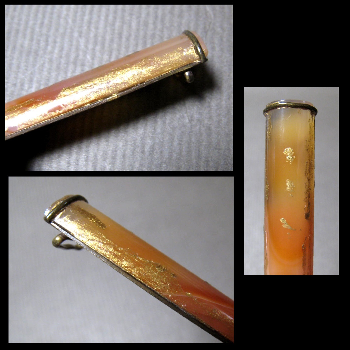 瑪瑙 金彩飾り 細長型 帯留 アンティーク 着物 帯飾り 縞瑪瑙 和装小物