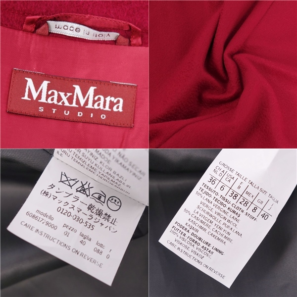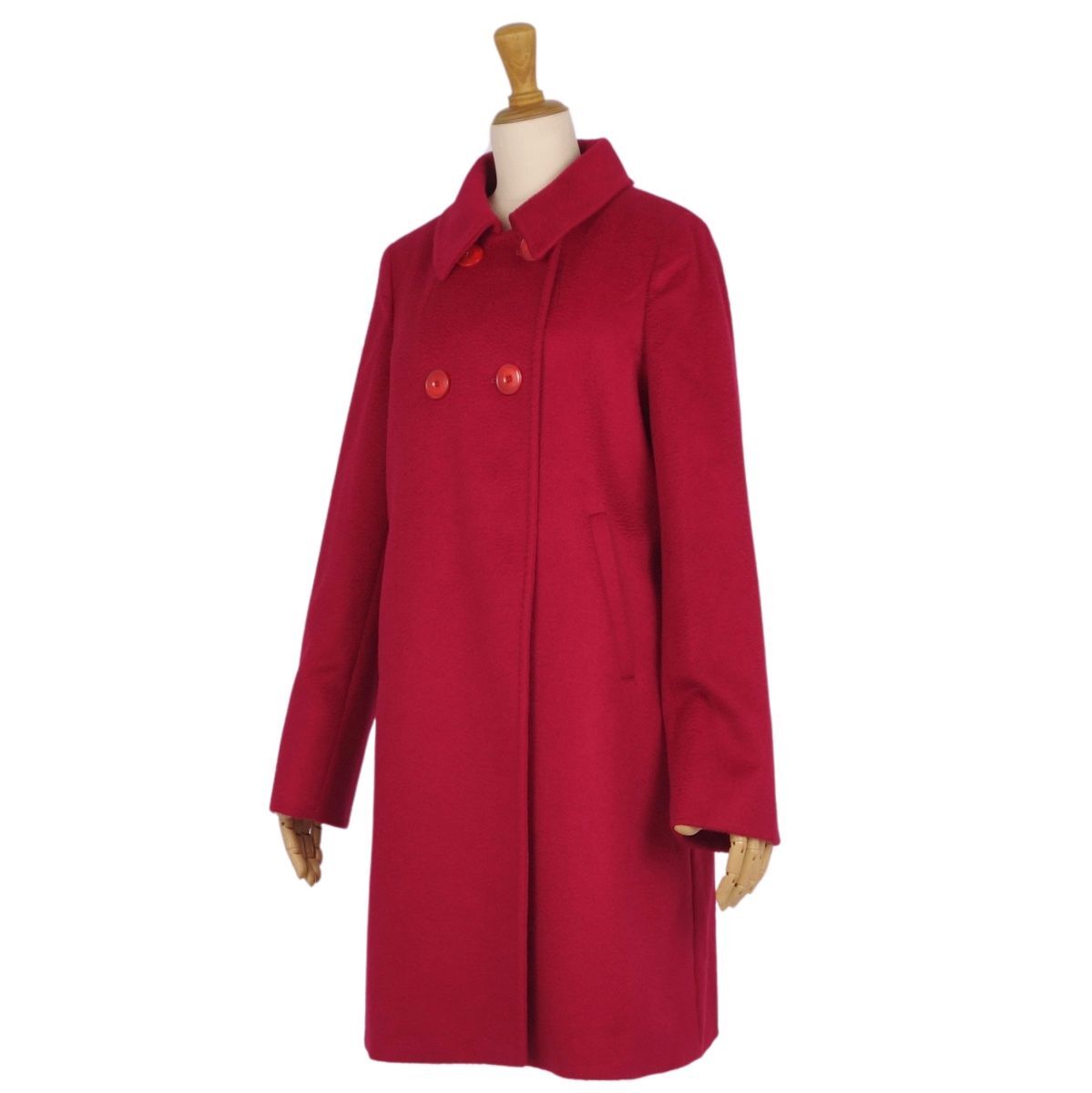 | 美品 マックスマーラ Max Mara STUDIO コート ロングコート ダブルブレスト ウール カシミヤ アウター JI40 レッド |