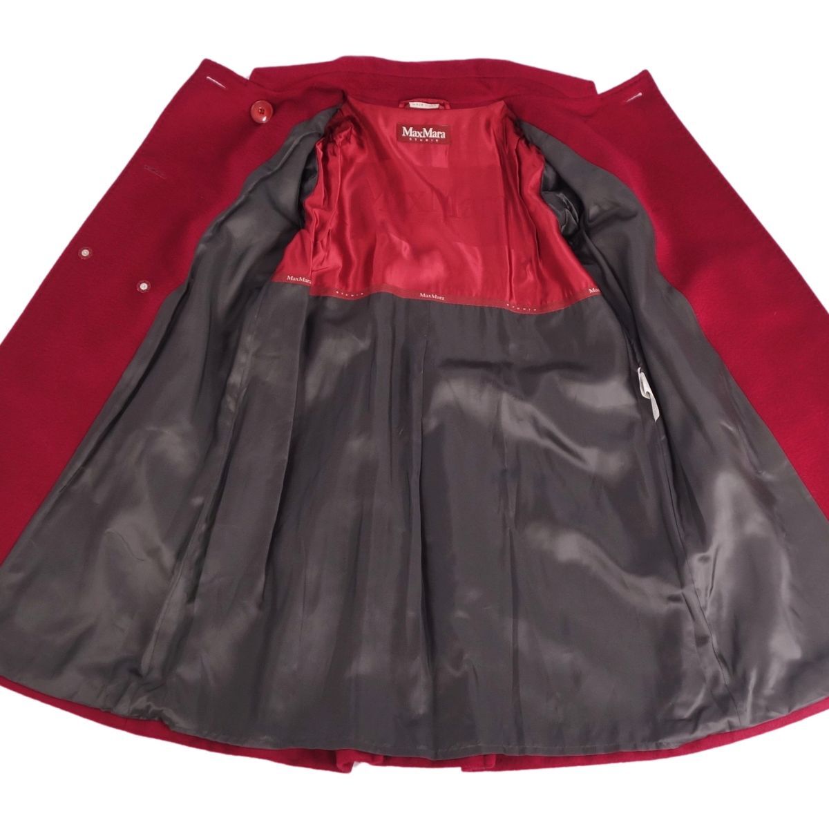 | 美品 マックスマーラ Max Mara STUDIO コート ロングコート ダブルブレスト ウール カシミヤ アウター JI40 レッド |