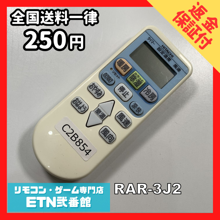 C2B854 【送料250円】エアコン リモコン / 日立 ヒタチ HITACHI RAR-3J2 冷房 暖房 動作確認済み★即発送★