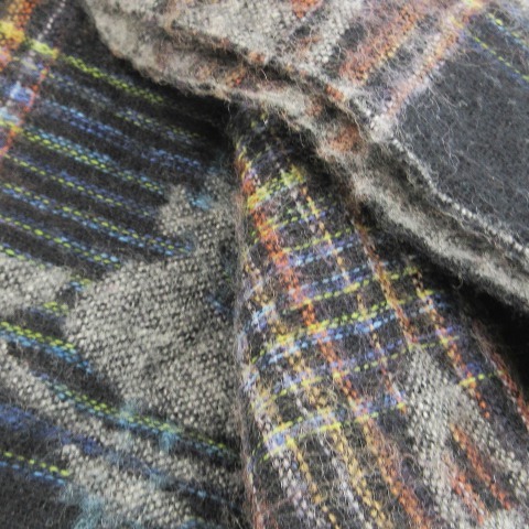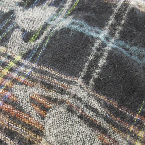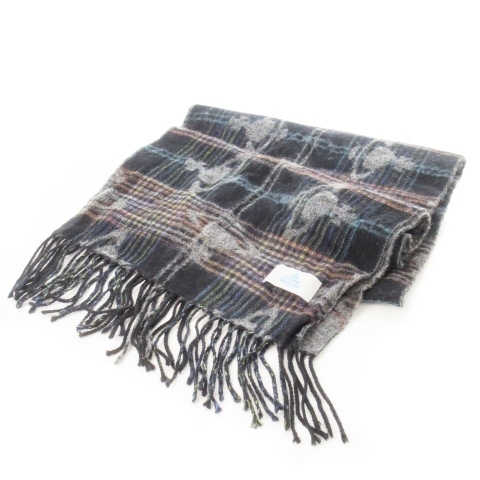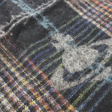 ヴィヴィアンウエストウッド Vivienne Westwood MAN マフラー ウール 起毛 フリンジ ロゴ オーブ チェック 黒 ブラック /CK10