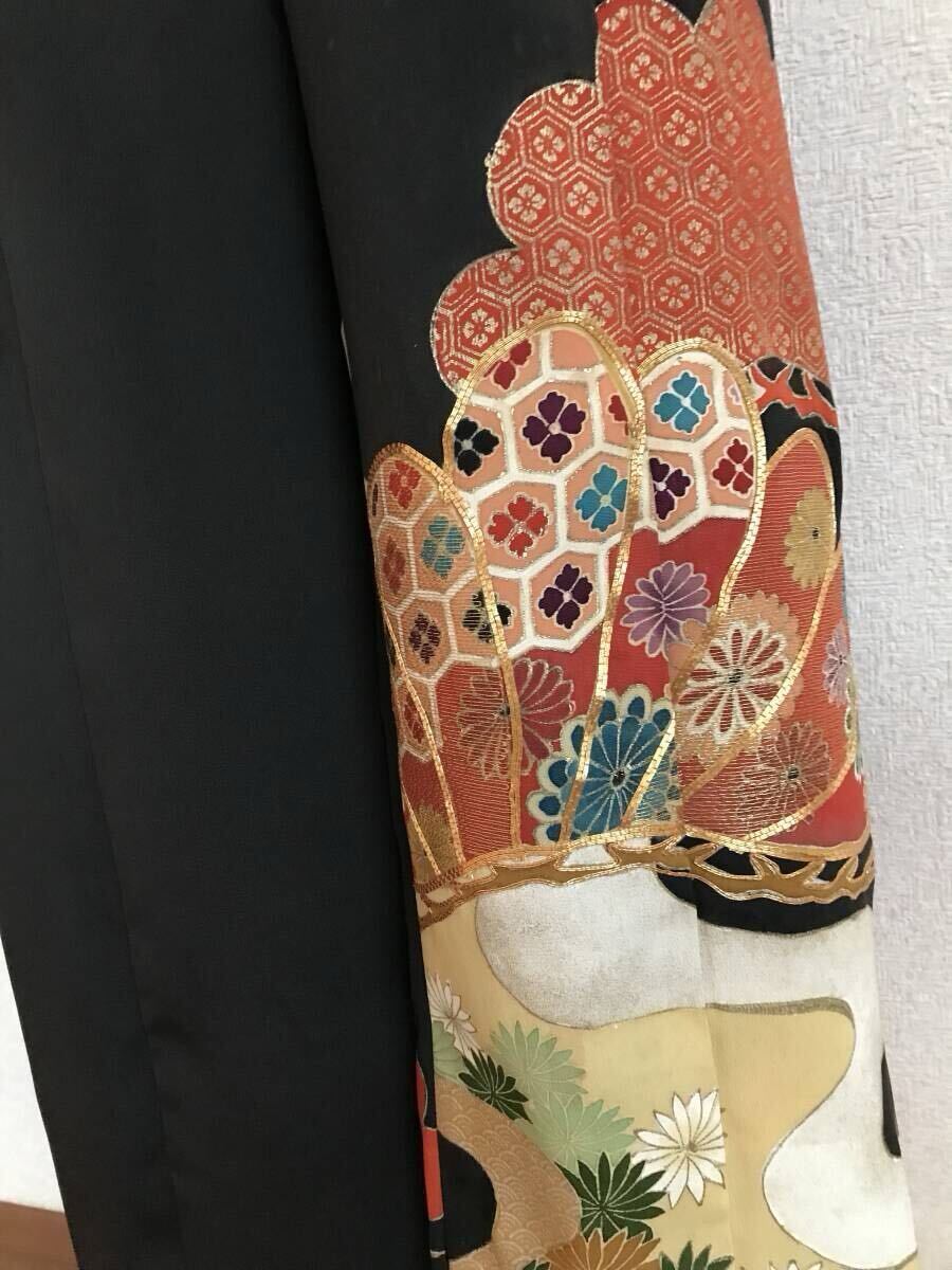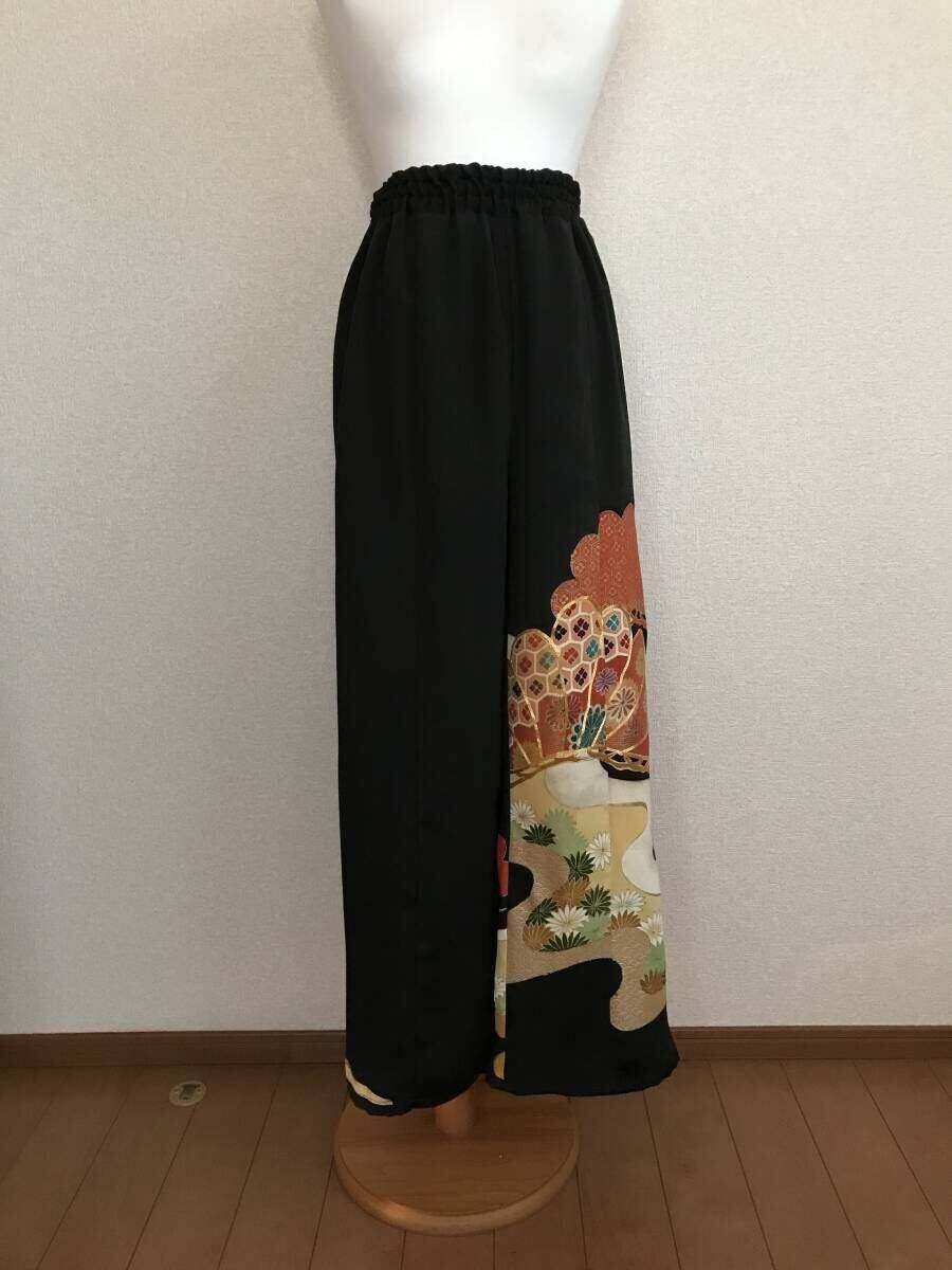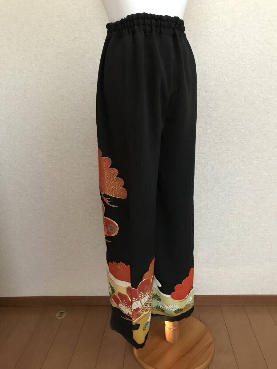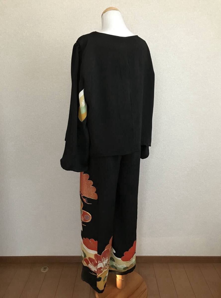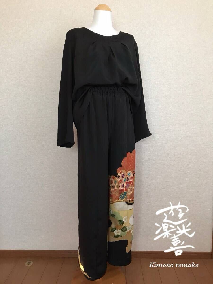 236★黒留袖★着物リメイク★パンツ&ブラウス★L★一点物★