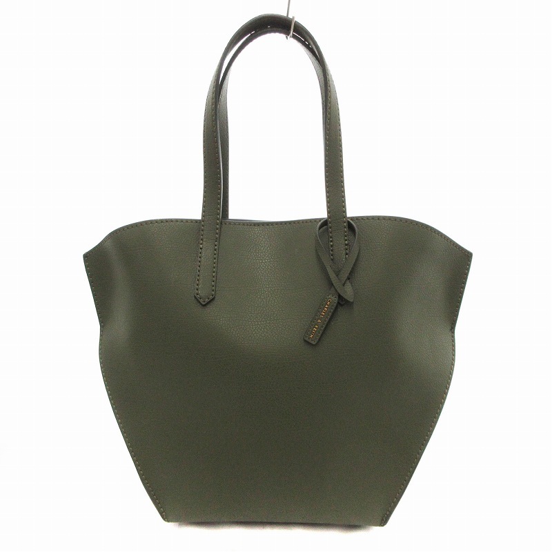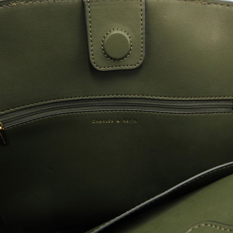 チャールズ&キース CHARLES&KEITH ラージ ジオメトリックトートバッグ フェイクレザー ポーチ付き カーキ /JS レディース