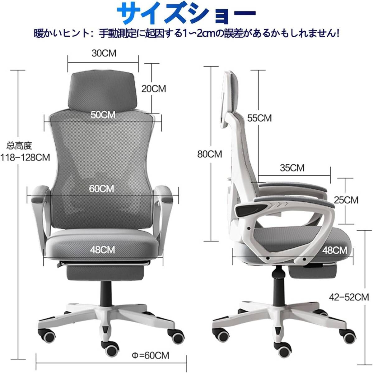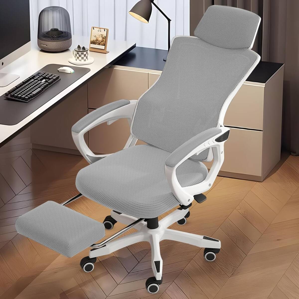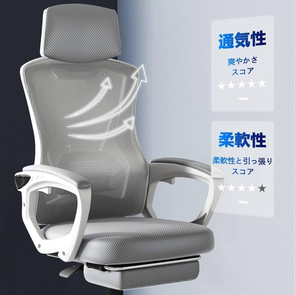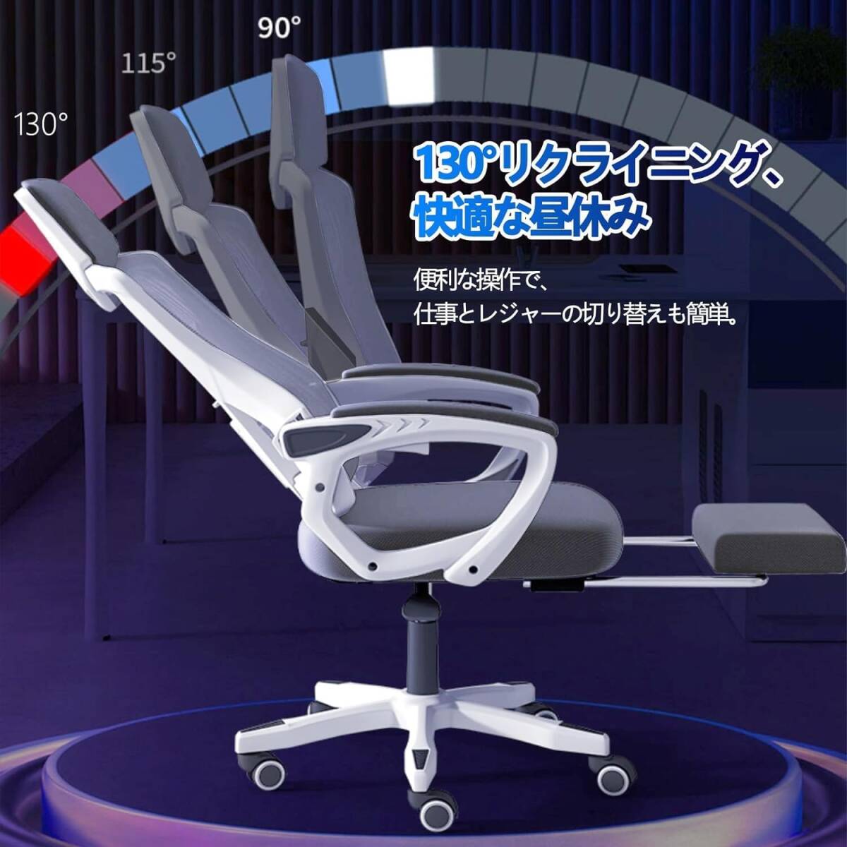 グレー色 デスクチェア オフィスチェア 人間工学通気性 ゲーミングチェア PCチェア 回転椅子 いす パソコンチェア