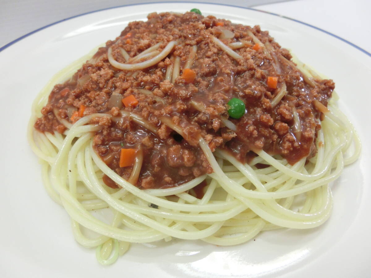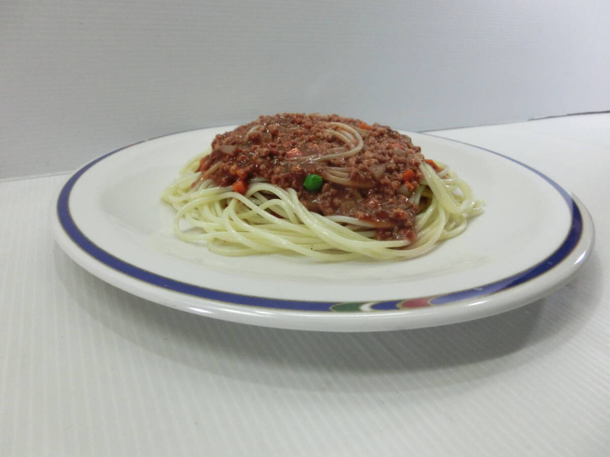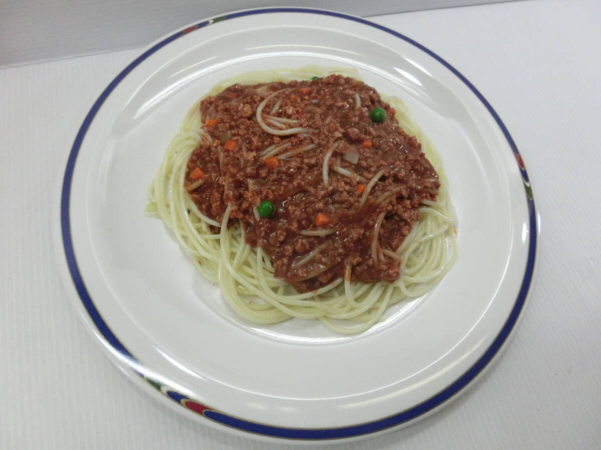 食品サンプル.実物大『ミートソース スパゲッティ.パスタ』器付