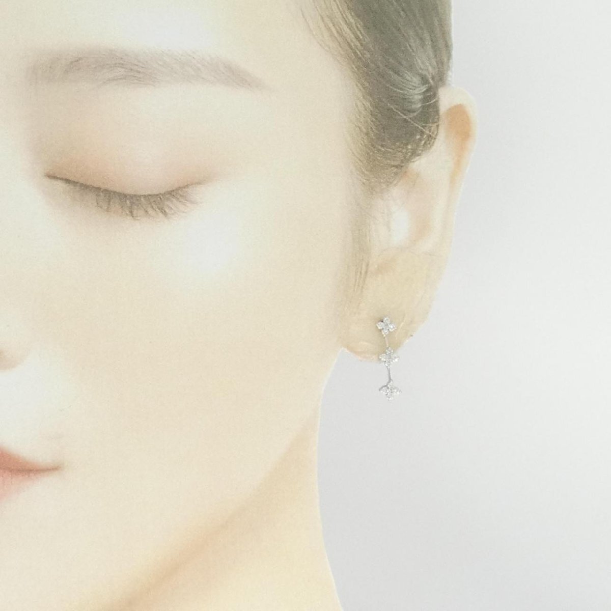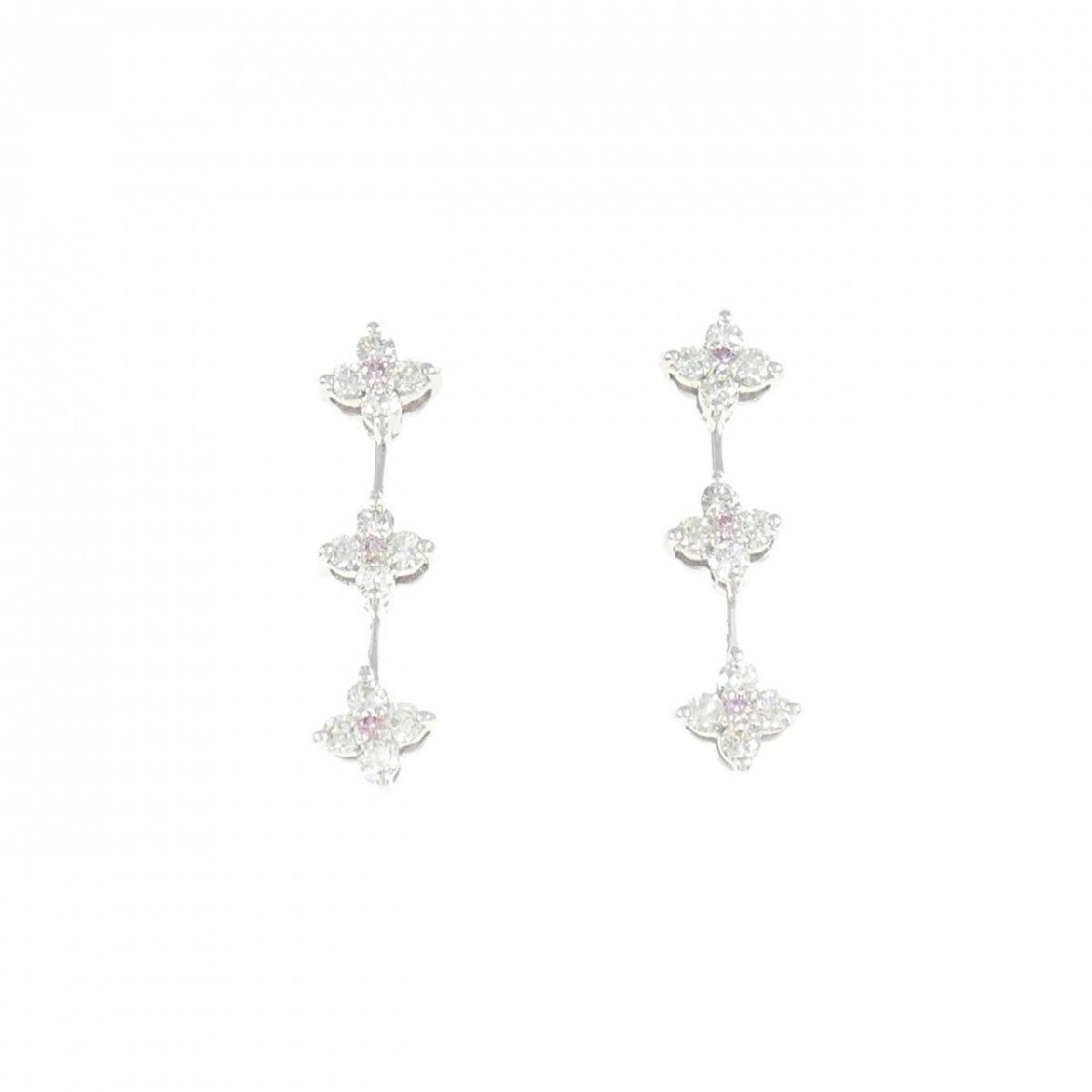 優しいピンクダイヤモンドをフラワーモチーフにあしらったピアス。揺れるたびに輝くダイヤモンドが、視線を惹き付けます。
