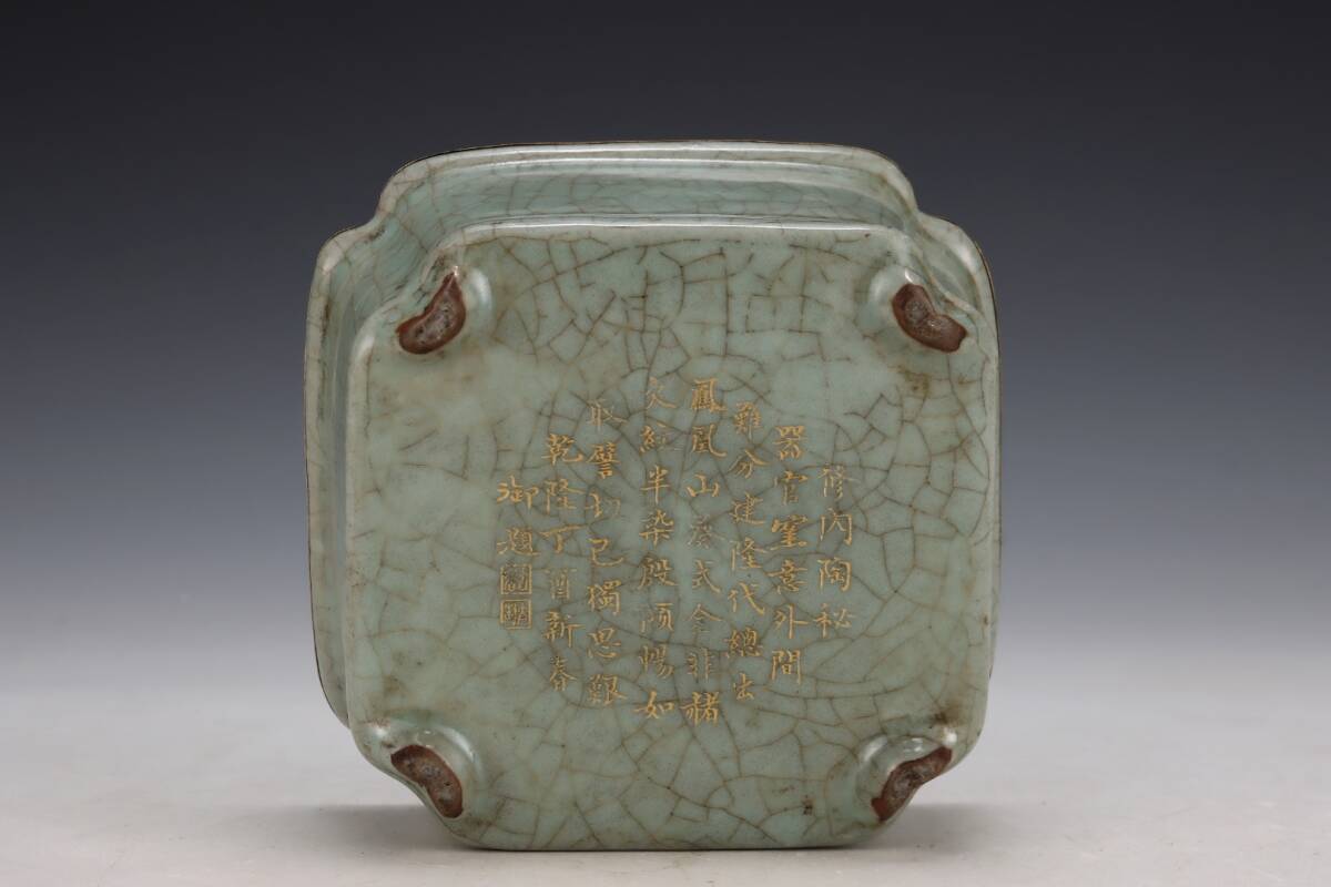 *珍品旧蔵* 宋 官窯 四方洗 陶芸 磁器 中国磁器 極細工 唐物 中国古玩 骨董品 古美味 H47
