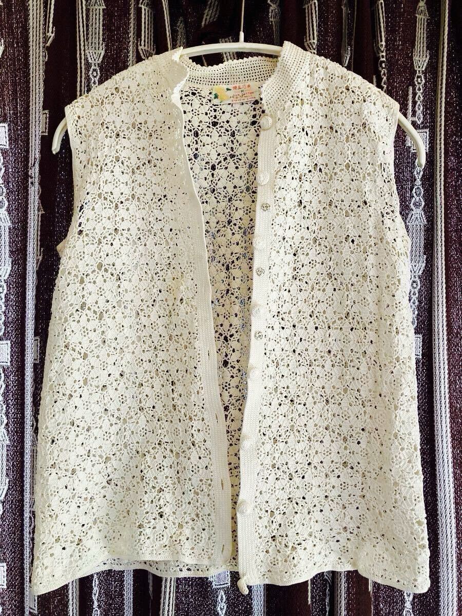 コットンレース編みスリーブレストップス白