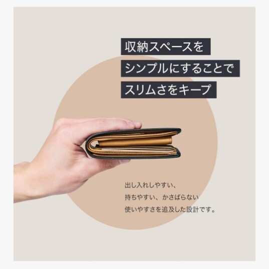 【使いやすいサイズ感】かさばるだけのムダな収納はあえてなくし、使いやすさを損なわないコンパクトさを追求しました。収納部分をフル活用してもパンパンにならず、ポケットに収まるスリムさをキープすることができます。